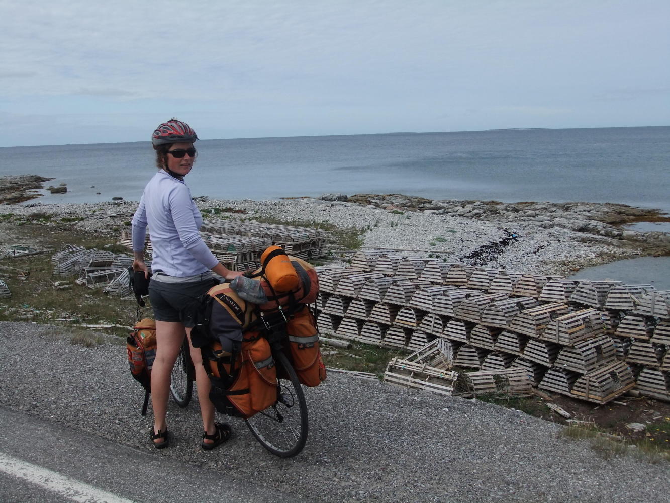 Chatting over, I went inside for a second breakfast washed down with some high octane coffee, and came out feeling like a different person. Just as I was about to ride on, I spotted a cycle tourist heading south. I waved, and Guenevive pulled over to chat. We rode for about 20 miles together (today is her first day of riding after hitching a lift to St Barbe), and the friendly guy in his pick-up pulled over again, just after passing us, and right by the entrance to the gravel road. As good as Guenevive's company was, I needed to get to Port au Choix, so said goodbye, with the possibility of meeting up again further down the road, and took the gravel road short cut.