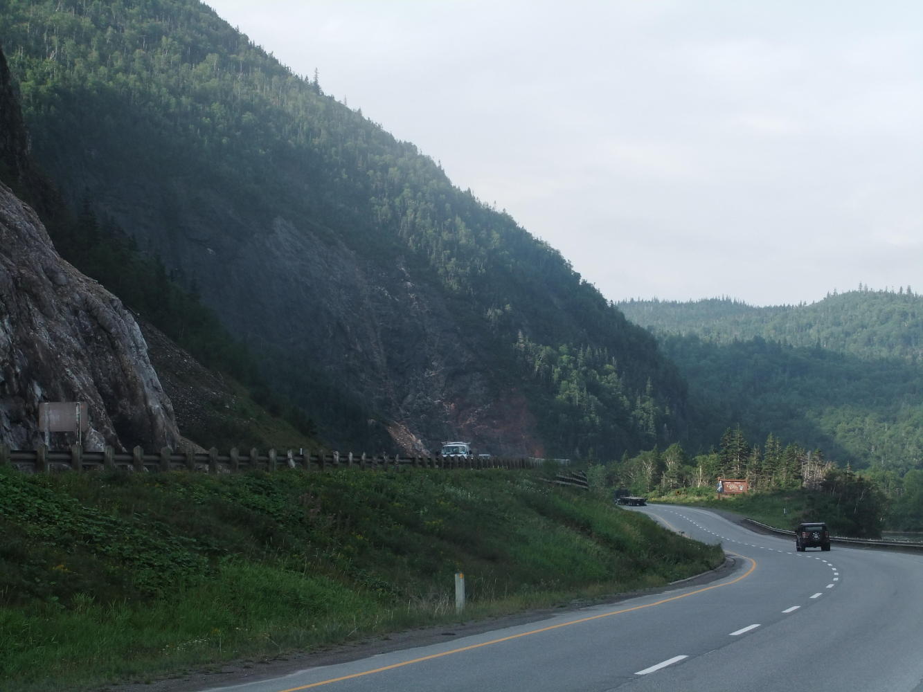 My going to bed last night was delayed by my campsite neighbours "insisting" that I join them for a beer and a chat, and I didn't feel in a position to refuse. Subsequently my departure this morning was slightly delayed too. Oh well. My first stop of the day was Tim Hortons, about 300 feet away, to check for an important email. It had arrived, and instead of continuing west, I now had to return to Deer Lake. First I had to go to Corner Brook, to the bike shop.