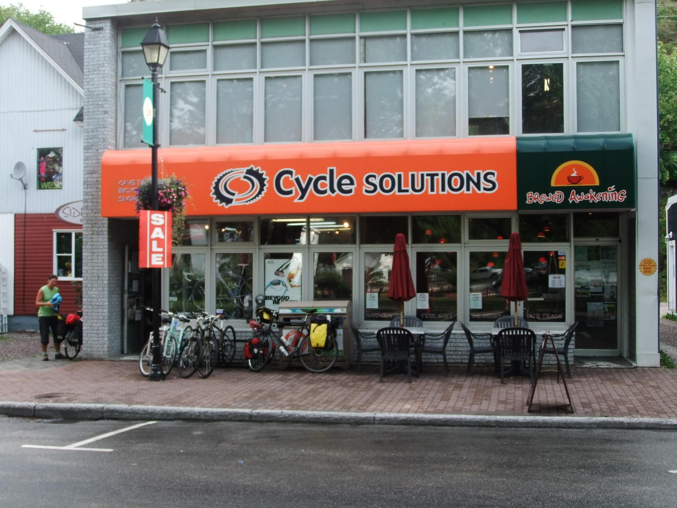 Whilst packing away this morning, something which I am sure I can now do in my sleep, there was a massive downpour. Fortunately I had left the tent up till last to dry out the dew, so we dived in there and had breakfast while it passed. It was then a short ride into Corner Brook to visit the bike shop - again, get some wifi, and buy some groceries. Fortunately we found a store other than Foodland, and were able to stock up on some tasty, wholesome and fresh food (this was the first decent food store I had been into since being in Sept Iles about 3 weeks ago). We will not see another store now until Sunday afternoon, so the panniers are filled to bursting point, and it took every trick in the book to get everything in. I had also called in to the shoe repair shop to thank Peg and Terry for arranging somebody to repair my tent, and spent a while in there chatting to them - a lovely couple.