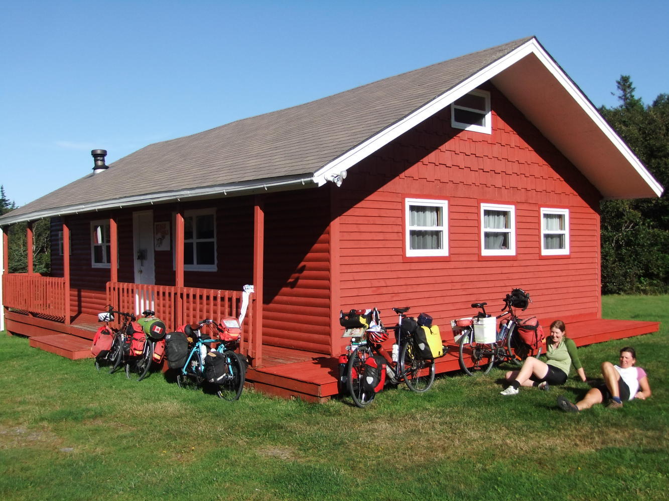At the first opportunity we were off the Trans Canada, and immediately things took on a better feel. We stopped at a stream to fill up on water prior to looking for a wild camping spot when Jeff turned up in his car. He had earlier knocked down a bird with his car (accidentally), and put it in his car to eat when he got home, but when he opened it up it was alive, so had come out to release it in the wild. After chatting for a while he suggested that we camp at the nearby Bellevue Beagle Club House, which had a pit toilet and fast running stream nearby.