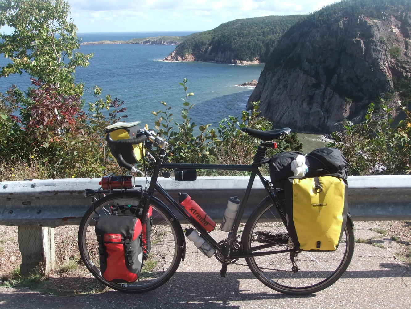The day started early(ish) leaving the hostel at 0750 and almost straight away climbing up North Mountain. At last I had been rewarded with a hard climb. When I dropped back down to Cape North and had bought groceries for the day I saw a group of about 8 riders riding "the loop", fully supported and with a SAG wagon. I stopped to chat to one of them and got some useful route advice for the road ahead.