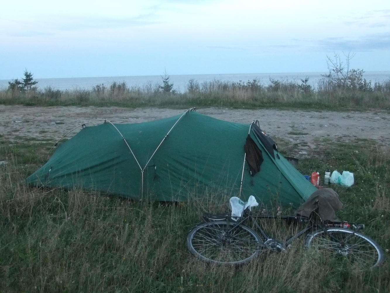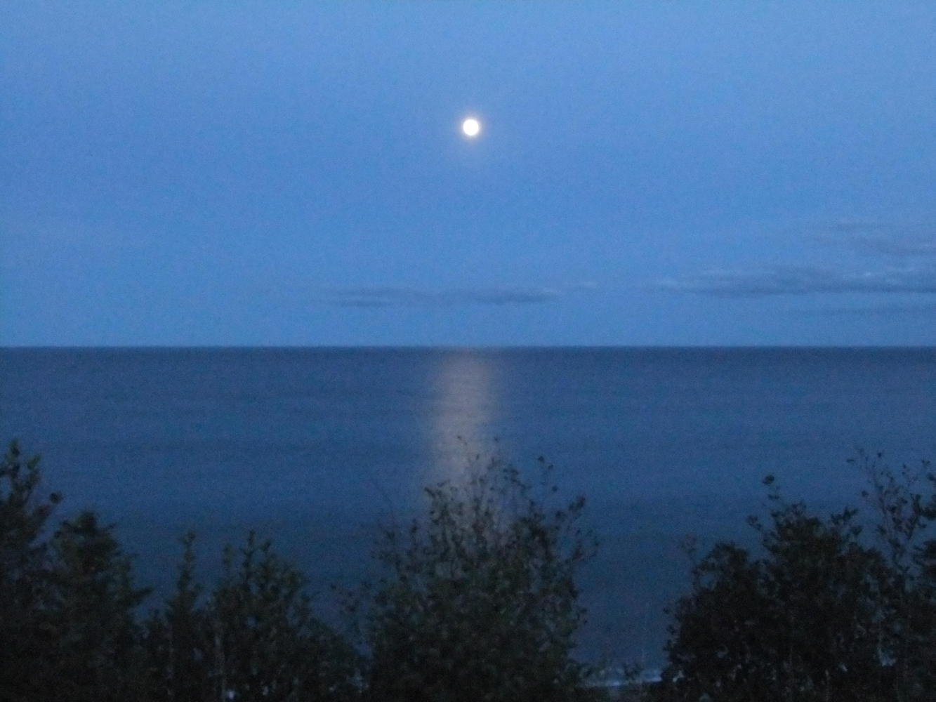 As I approached Wreck Cove I saw a spot perfect for wild camping, but there was no water there and I was desperate for a wash and my water bottles were nearly all empty. Half a mile further on there was a river, so after doing the necessaries I was back at the good spot, and was able to watch the moon reflected on the sea before climbing into my cold bag.