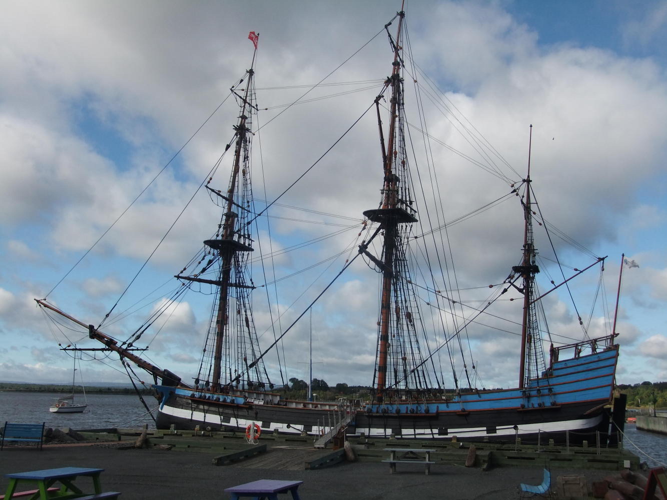 This place is amazing, I went to sleep last night to the sound of raindrops falling on the tent and awoke this morning to a dry tent. How does that happen? After packing away the dry tent, and then buying the days groceries, I was first in the queue to see the ship "Hector" and her museum. She is a replica of the first ship to bring immigrants into Nova Scotia in 1773, and was filled with Scots fleeing from the English. Cowards. The display was excellent, and I recommend it to anyone passing through or in the area.