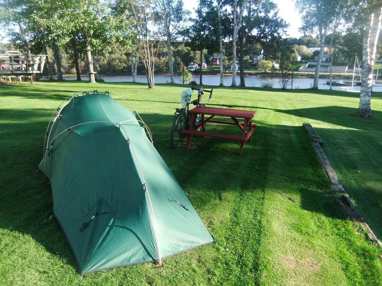 So far everybody on PEI has lived up to the reputation that has been bestowed upon them. I am now sat at the Lanes Cottages Campground, overlooking the river and thinking that this is a good place to chase away the endoftripitus that had been bothering me at the weekend.