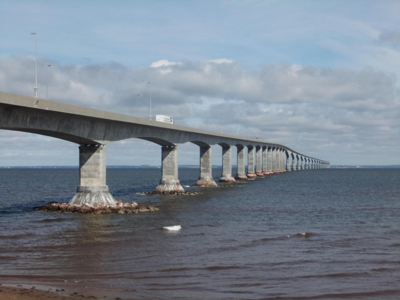 After a much quieter night I awoke at a much more reasonable hour, and was off soon after 9 with a belly full of bacon and eggs, heading towards the Confederation Bridge, joining PEI to mainland Canada. This is one of the few places where you can't ride your bike, and have to load it onto the back of a truck and be driven across. At the other side of the bridge is New Brunswick, my 10th and last province of the trip.