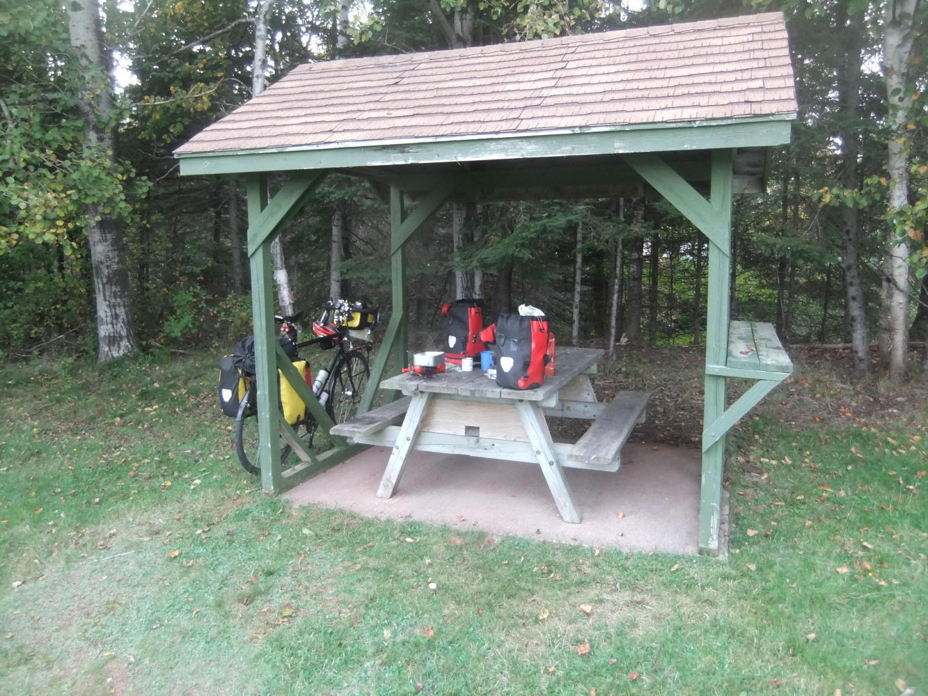 Normally being in 2 provinces in a day is cause for celebration, but today I made it 3. Just before I stopped for the night I was back in Nova Scotia, and set up the tent at a Provincial Picnic Site - not an "official" camping location, but I left it as I found it except for a small area of flattened grass. It was a beautiful calm evening with clear skies, and I went to sleep full of hope for tomorrow.