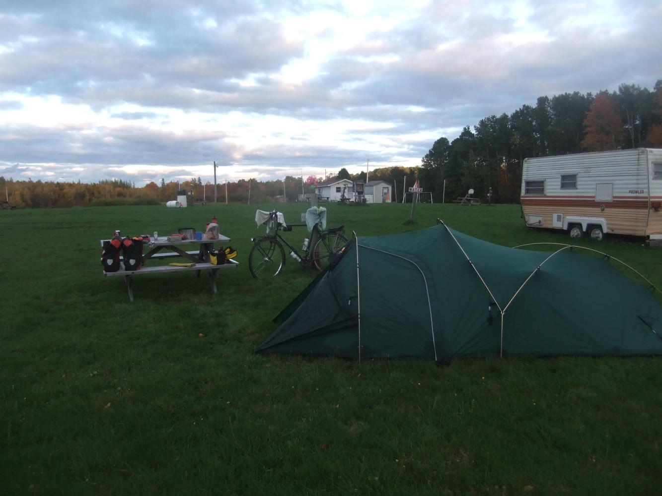 There aren't many campgrounds still open at this time of year, but I had found one listed just outside Tatamagouche - the Poplar Grove Campground. Maybe the Unpopular Grove would seem more appropriate as it looked closed for the season and there was nobody about to ask. I was tired, and cold, and ready to stop, so found a not too soggy spot and set up. Later on the owner came over, explaining that it was too wet to keep open, but that I could stay the night. It was dark at 7, so I was in my tent reading early, and asleep soon after.