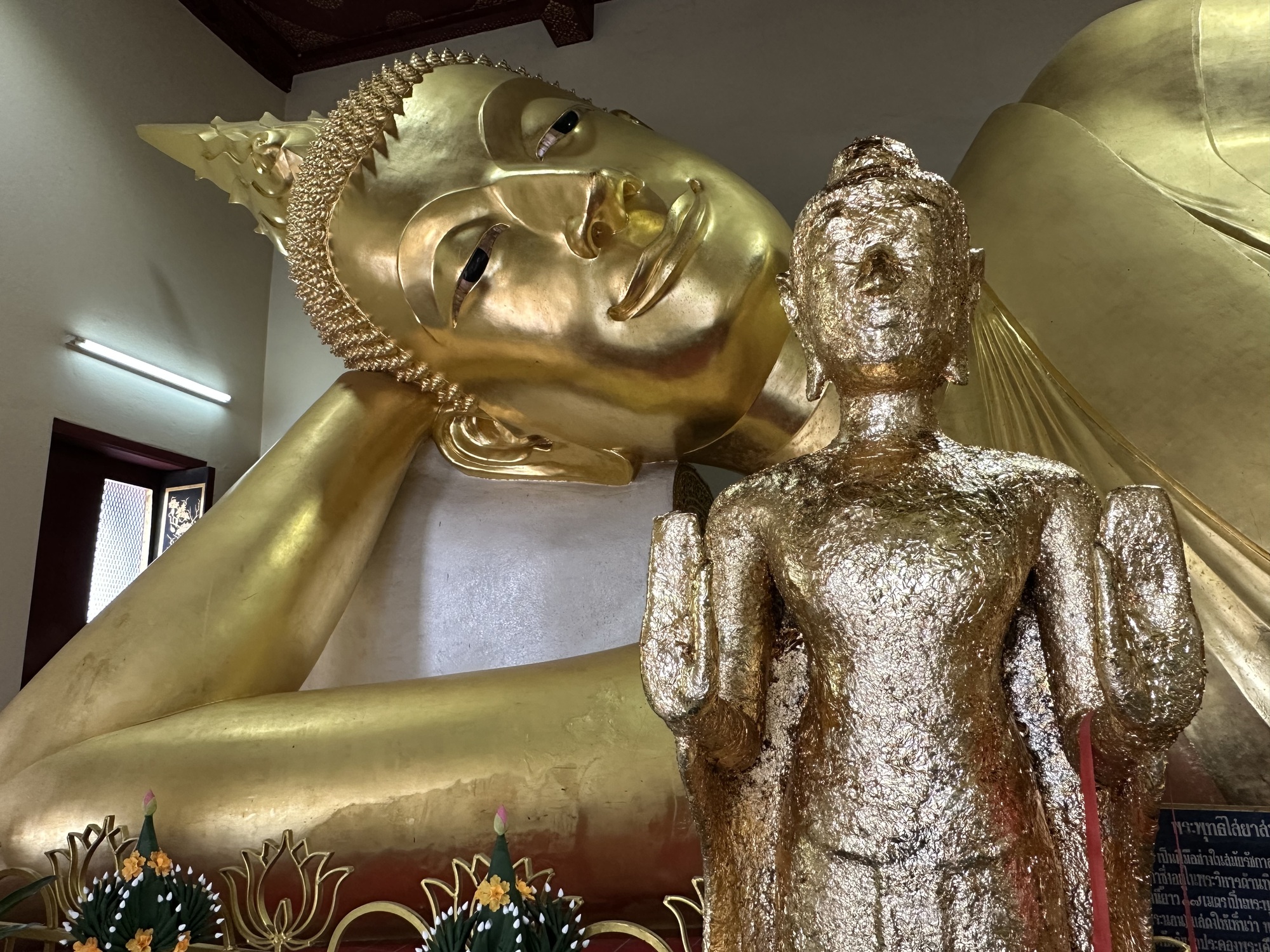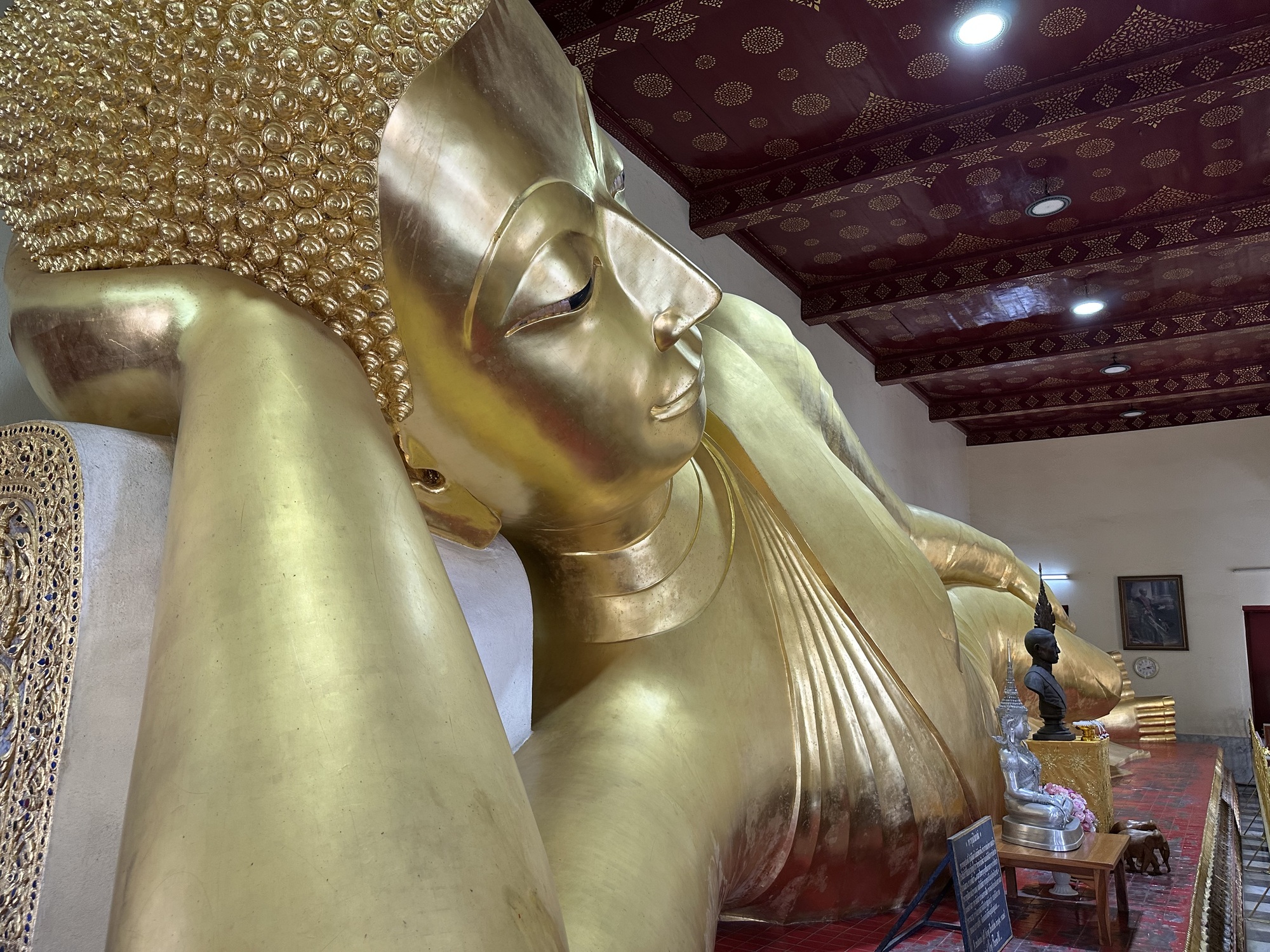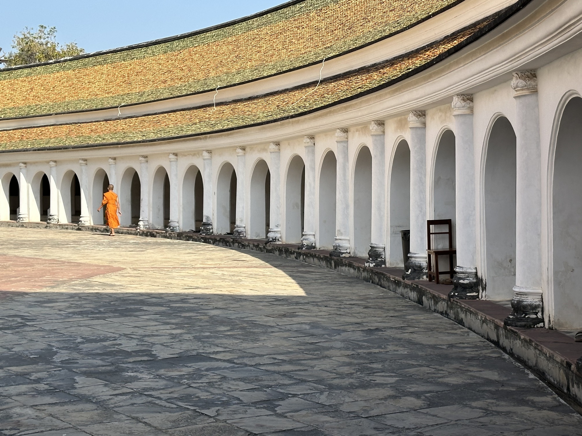There were lots of Thai tourists and a few foreign tourists. There were people sweeping up bodhi leaves, moto drivers waiting for customers, and one very old, bent-over woman who shuffled around approaching people and trying to sell them some sort of bagged snack. In the course of two or three hours she passed near me at least five times, and I would have gladly given her money but I didn’t have any small bills on me. So there was that.