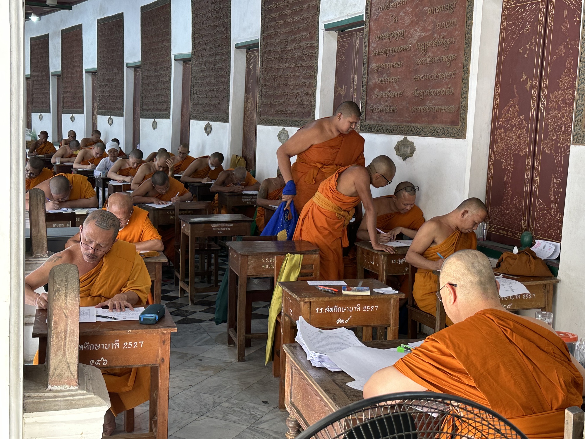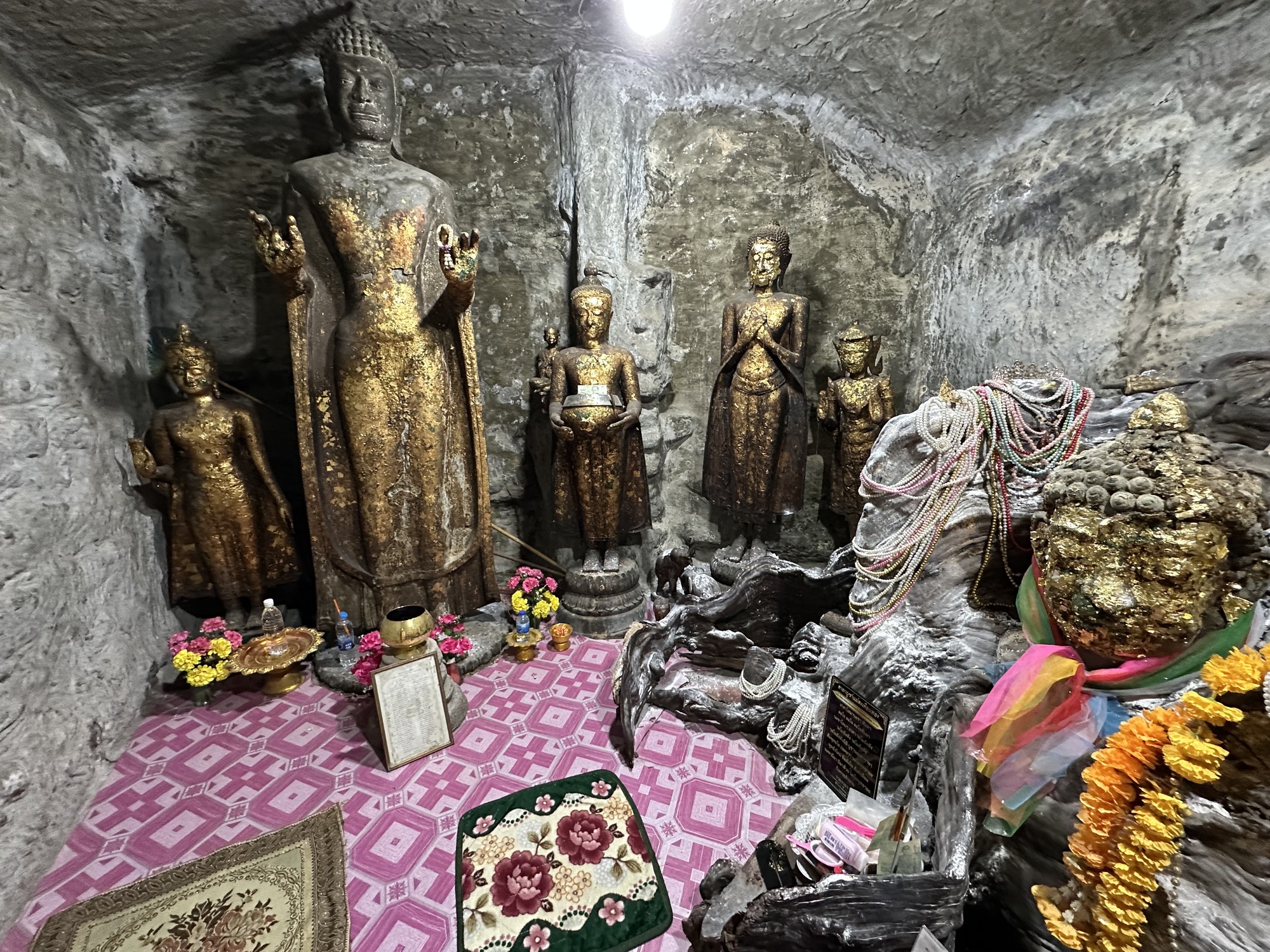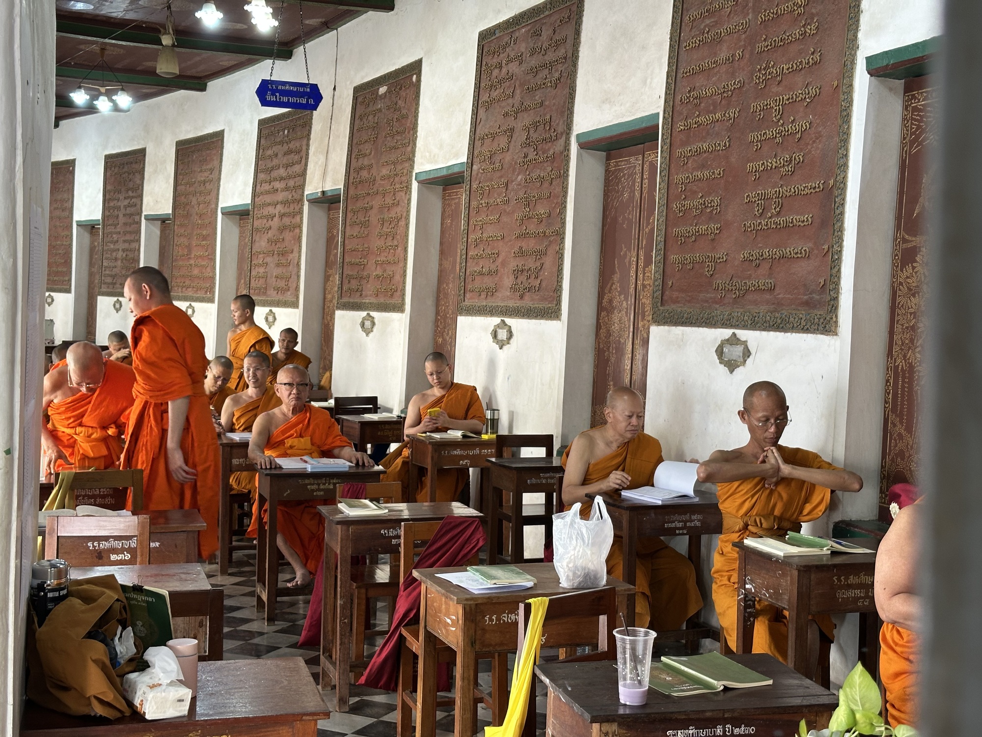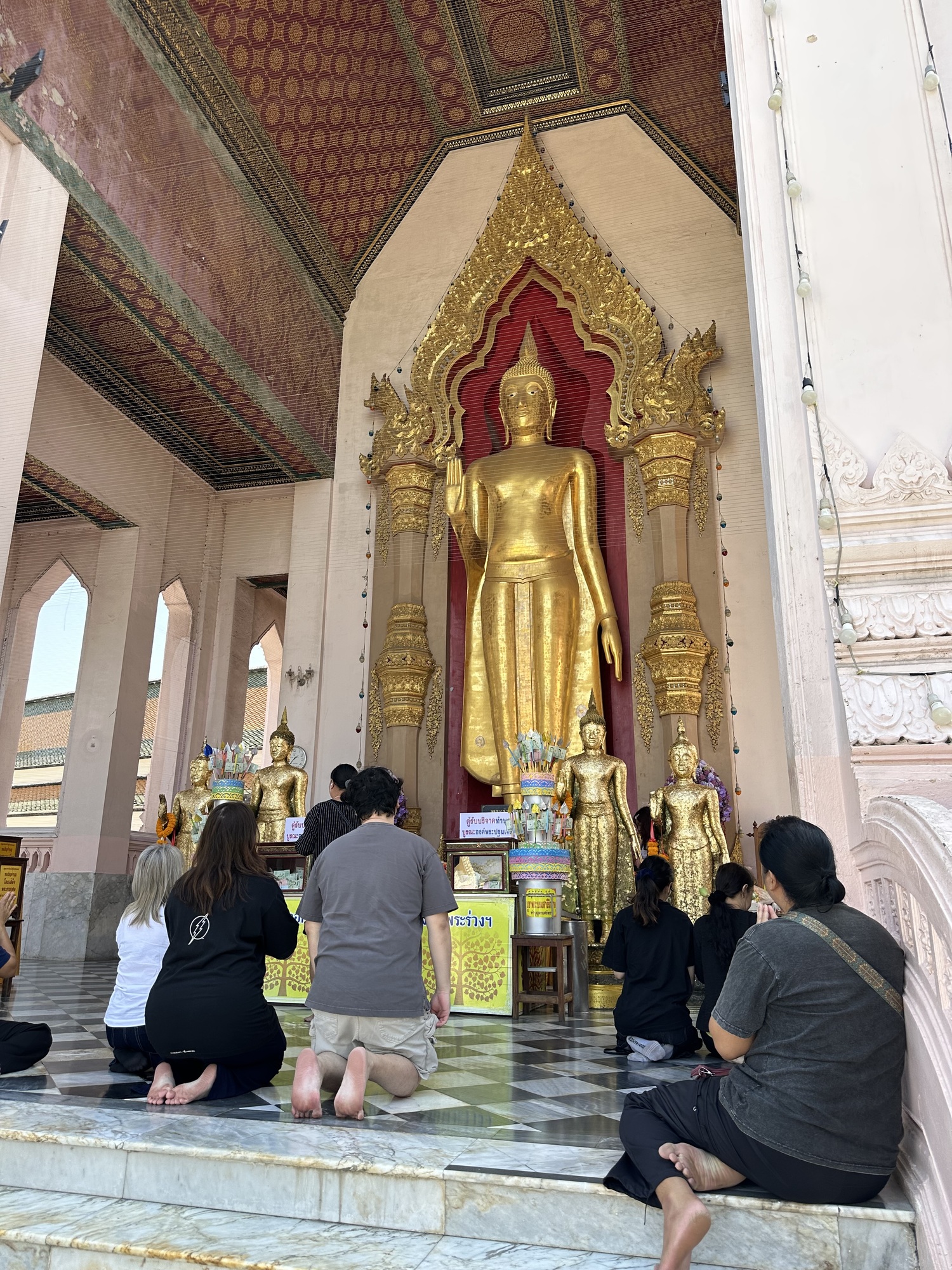 There were lots of Thai tourists and a few foreign tourists. There were people sweeping up bodhi leaves, moto drivers waiting for customers, and one very old, bent-over woman who shuffled around approaching people and trying to sell them some sort of bagged snack. In the course of two or three hours she passed near me at least five times, and I would have gladly given her money but I didn’t have any small bills on me. So there was that.
