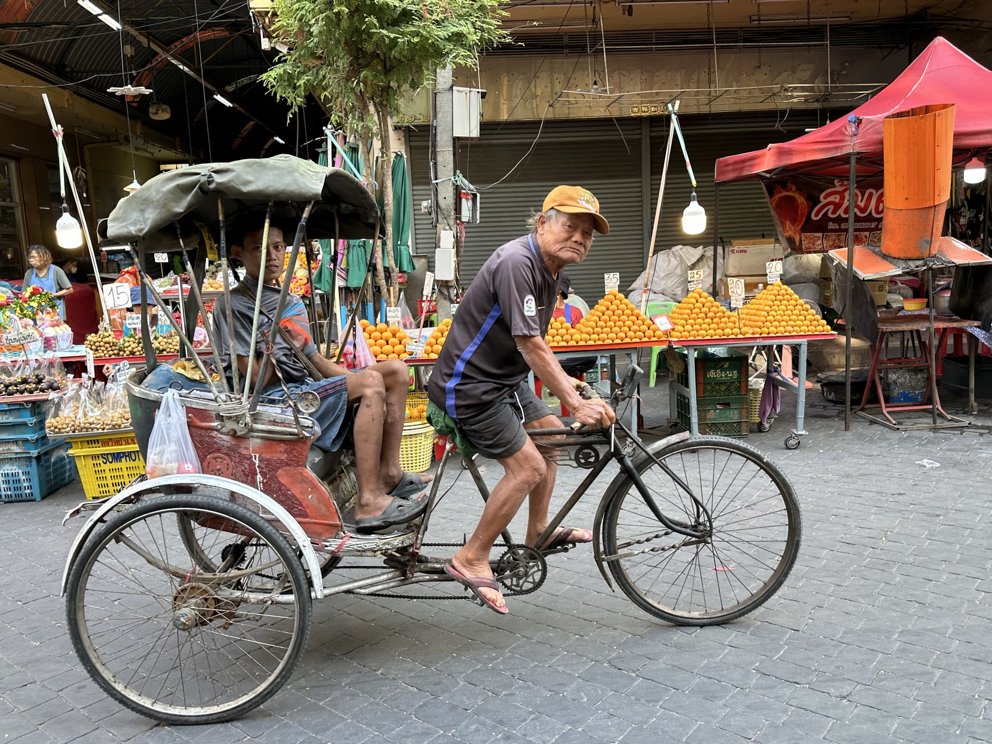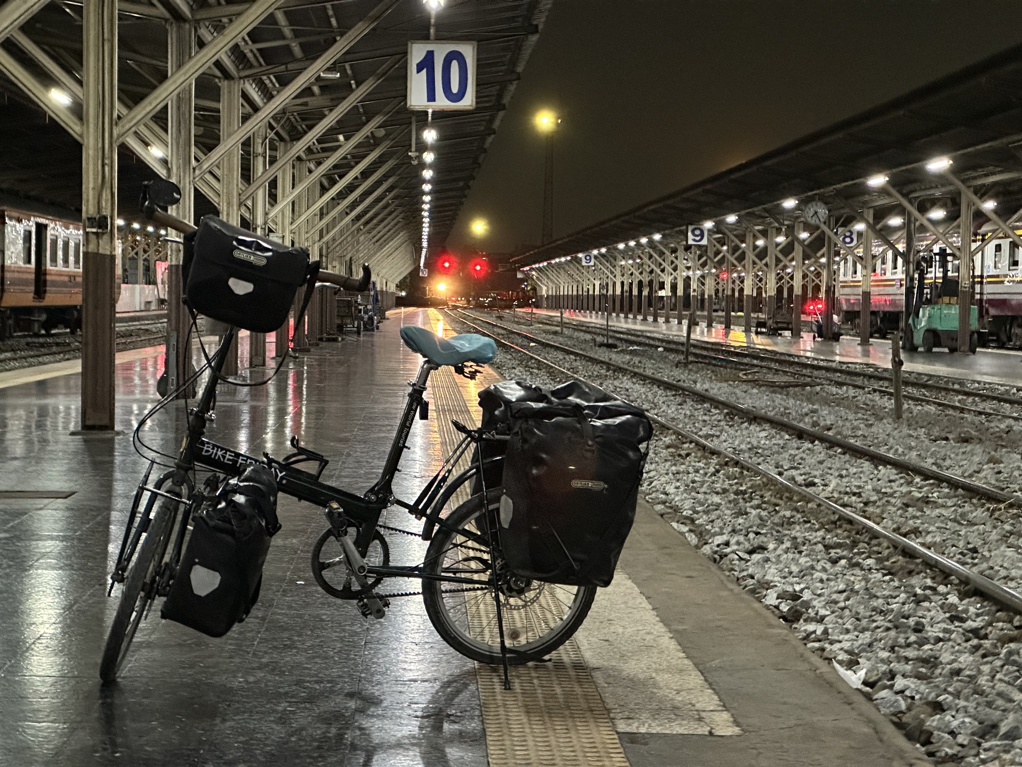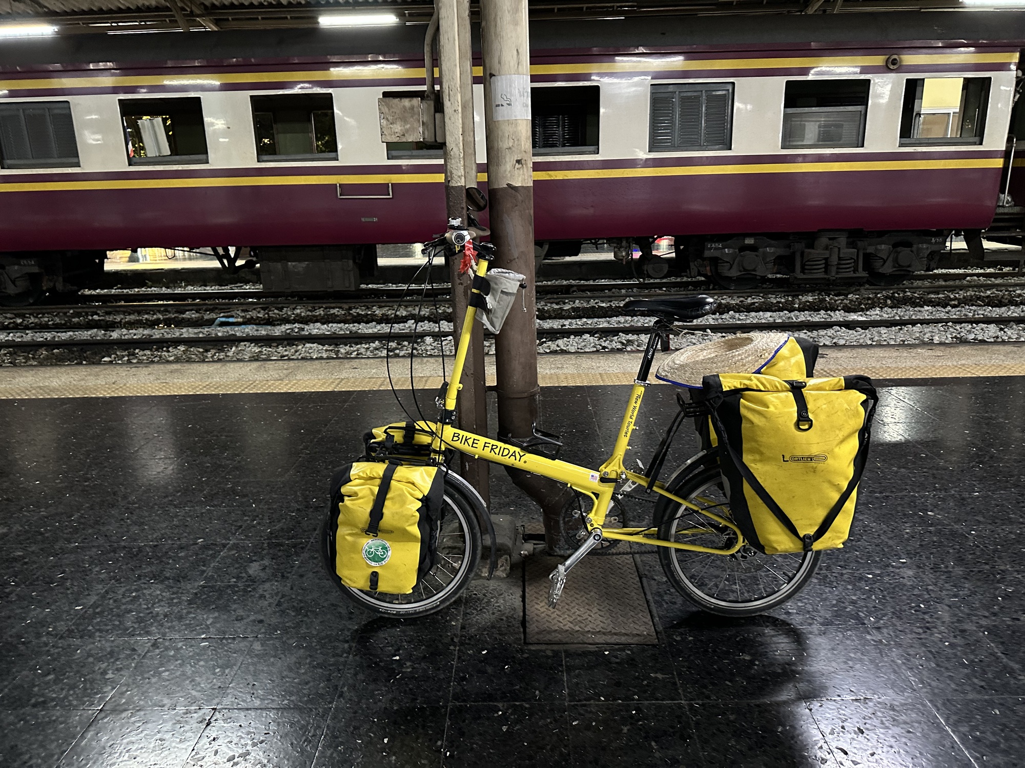 I used my translate app. “Our hotel is at Hualomphong”, I wheedled. “Our bikes are small, we have taken them on many trains.” All true. She asked me if they fold. Oh, yes, they fold! Well, okay then. We had no intention of folding them but she didn’t need to know that. She told us to come back an hour before the train left to buy tickets. The conductor on the train would figure out the charge for the bikes, and we would pay him.