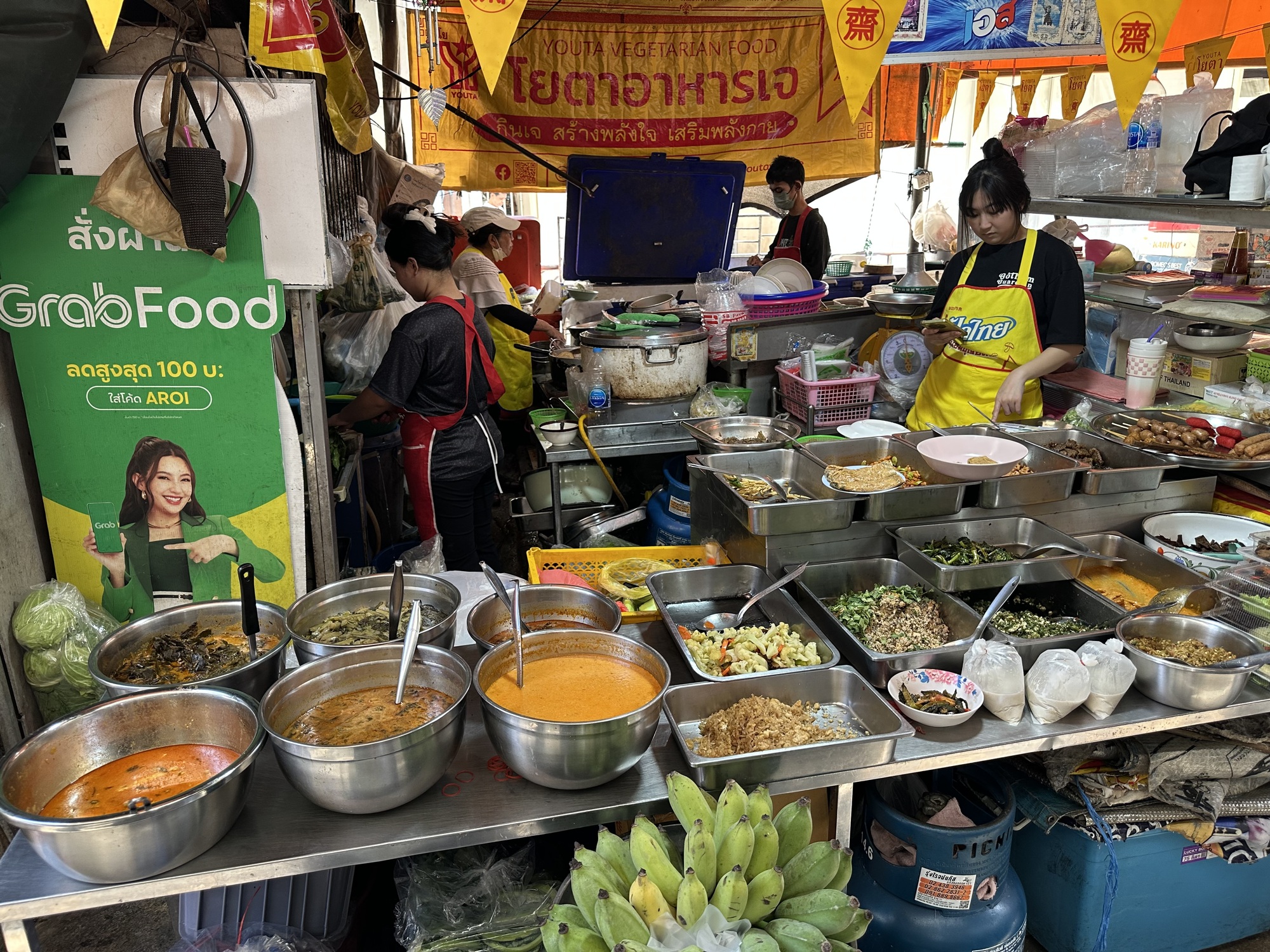 After our successful shopping trip we packed up our duffels and then went over to our favorite streetfood street and had some delicious yellow curry. The streets were alive with people, the lovely cool breeze had everybody out. We gaze around and try to imagine if Portland streets were this vibrant and busy. We live near a very lovely food street and on a summer evening there ARE throngs of tourists and locals on the sidewalks going from restaurant to gelato place to wine bar. But they don’t have to step around vats of boiling oil or stacks of plastic chairs so the similarity ends there.