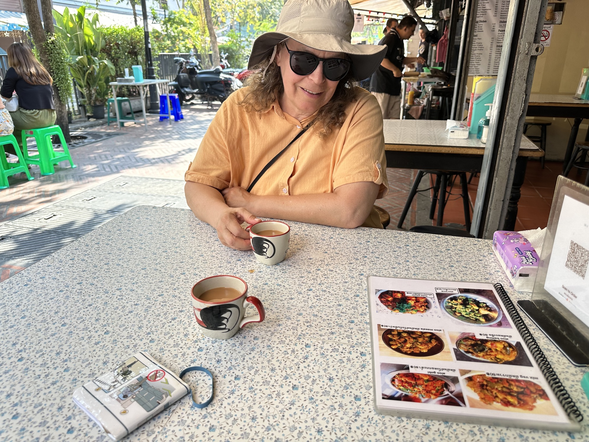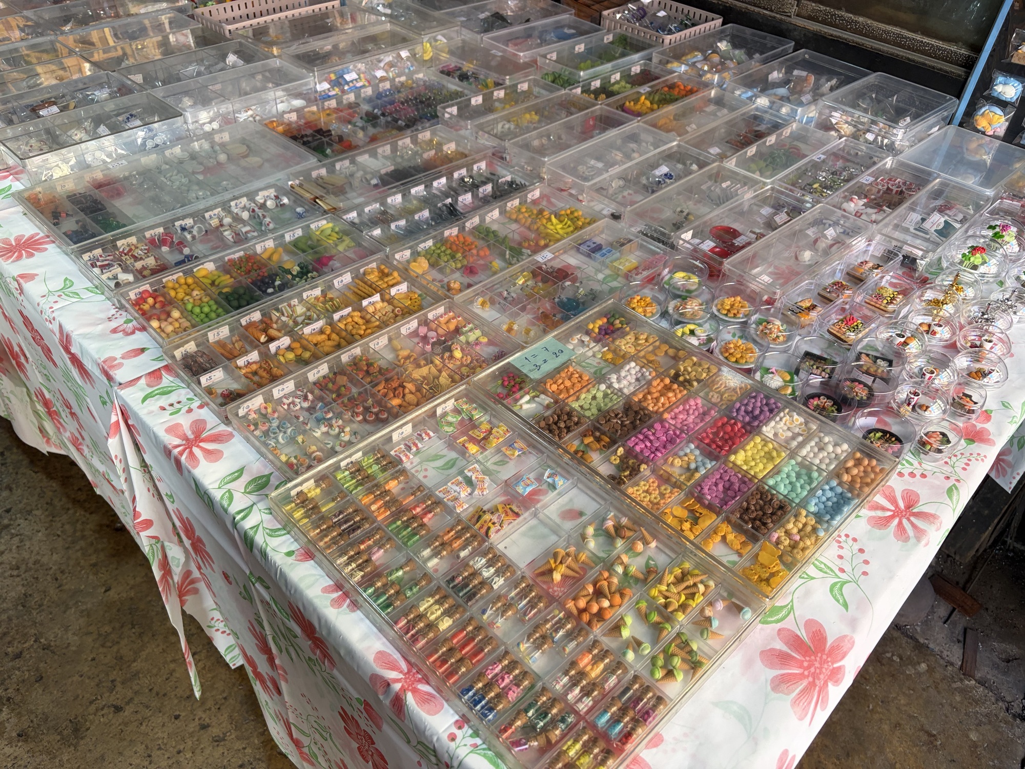 After a little stop for Indian chai, we entered the maw of the main tiny lane of Chinatown shopping hell. It’s an experience that is like no other. This is my third time and I lasted longer than I usually do but it’s pretty incredible. Narrow storefronts crowd side by side in an alleyway where absolute throngs of people and the occasional motorbike commune and shop. We were looking for little things for the granddaughters and their dollhouses. They have the 1:12 scale wooden dollhouse that I built for their mama when she was their age so they really are into miniatures.