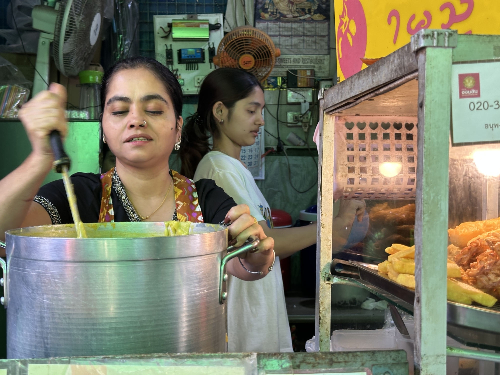 This bus went to an area of Chinatown that has a small pocket of India, and within that pocket is a tiny restaurant in an alley that makes mohinga, the national dish of Myanmar. And laphet thoke, tea leaf salad, also a national dish of Myanmar. Two iconic dishes from Myanmar.