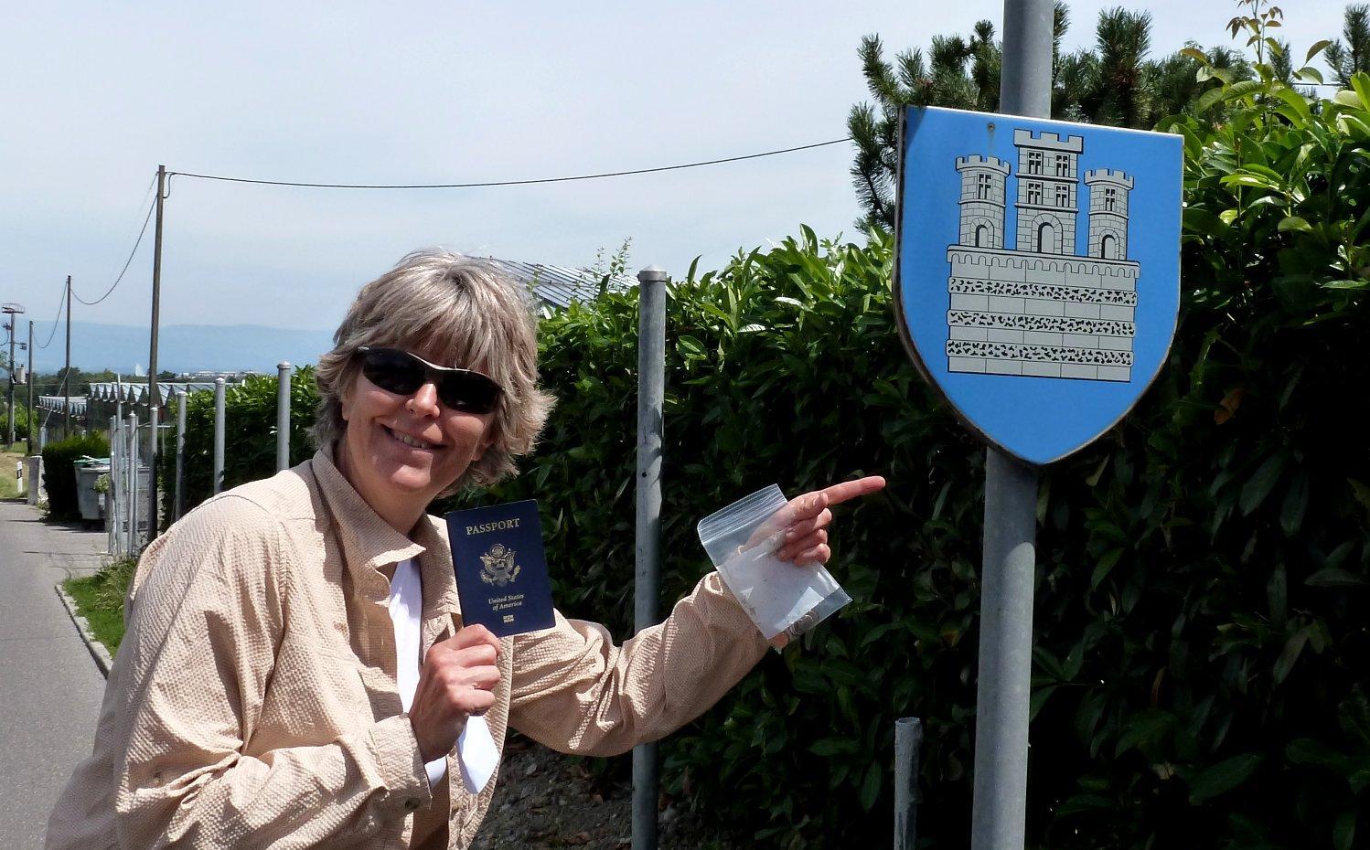 Instead, I will post my official border crossing picture. I mentioned that they don't post armed guards, like in the old days. So instead, Steph took my picture with my passport, while we were riding to the store (on the French side) for Groceries. It's the best I can do, so no moaning about it.