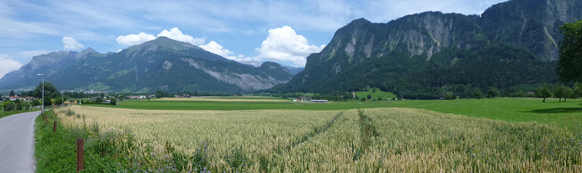 After yesterday's, on and off, rain, I was surprised to wake up to blue skies and warmth, and I set off in high spirits. I followed the bike route to Chur, which rolled through quite towns and forests. At Chur I picked up the Rhine route, and rode next to the river as it grew wider with every mile, I mean kilometer. It was flat, the riding was easy next to the river.