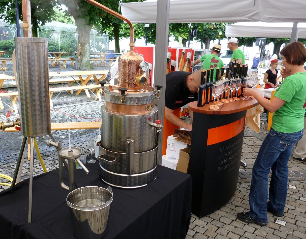 It was all things cherry--cherry bread, cherry kuchen, cherry wine, cherry jams, and, well, cherries. Cherries of all kinds and varieties. But the most interesting thing to me was the cherry liquor. There was even a cherry still on hand to make it. Looked like corn mash to me, white lightening with pits.