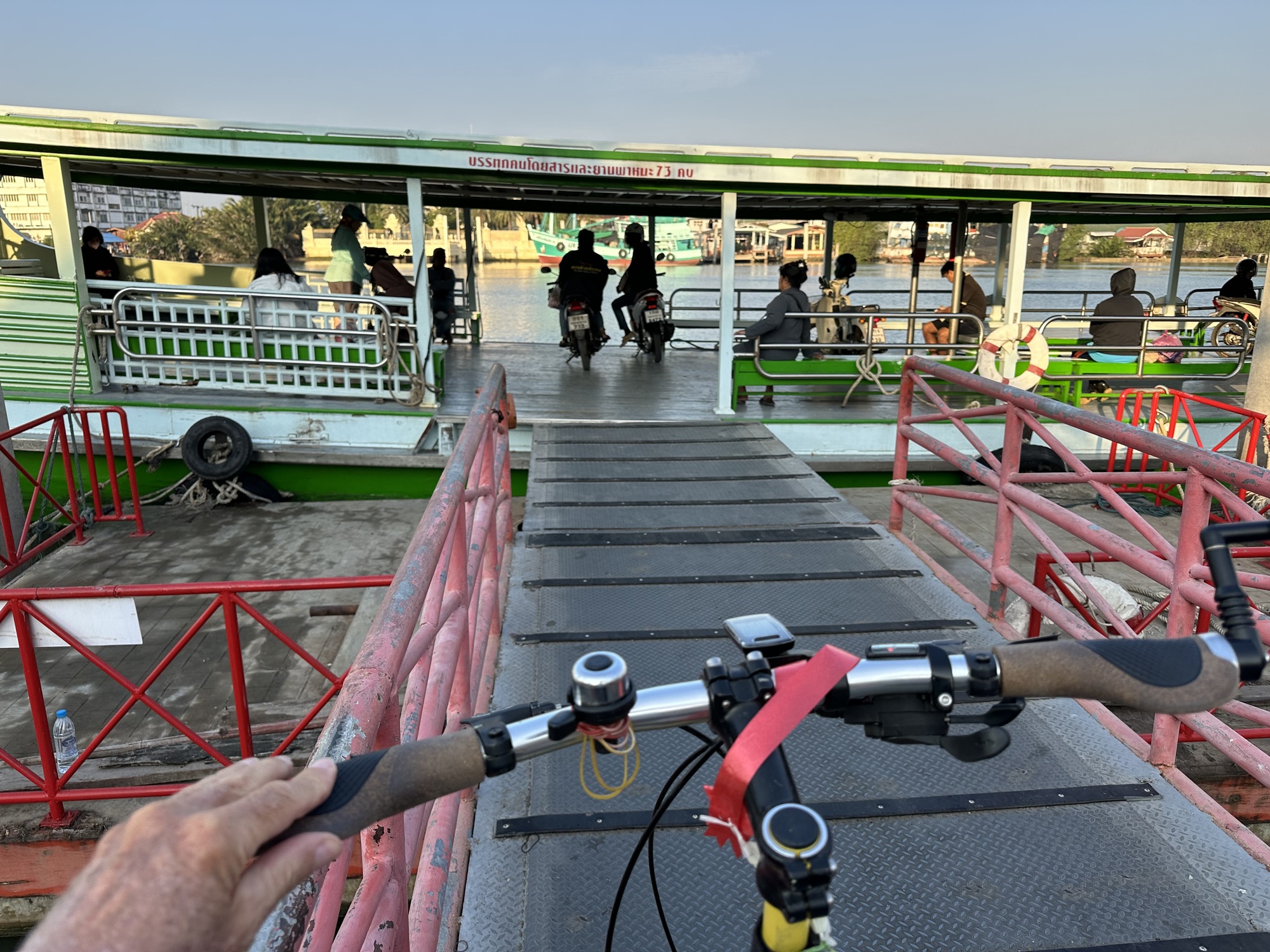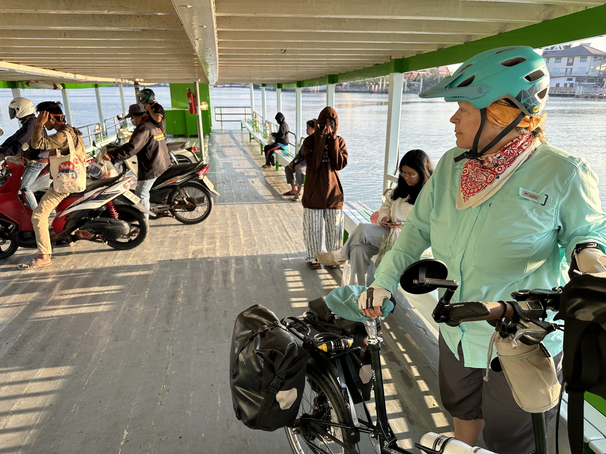 “Let’s ditch this dump”, I greeted him. Miss Merry Sunshine, that’s me. We grimly dragged ourselves out of this hellish room and loaded up and rode down a few wrong way blocks to the river pier. Nothing like a short ferry ride to lift one’s spirits. It cost six cents per person, three cents per bike.
