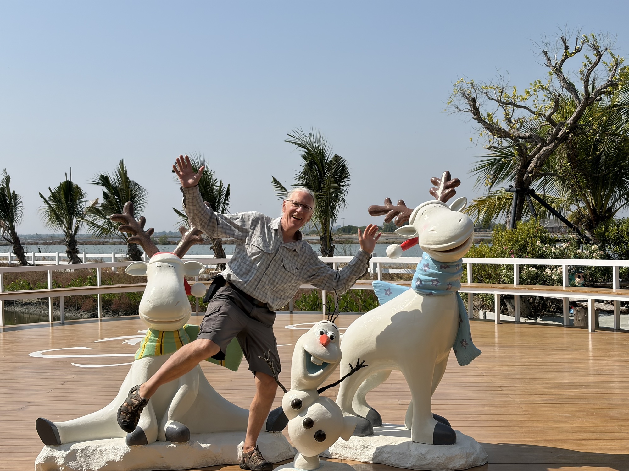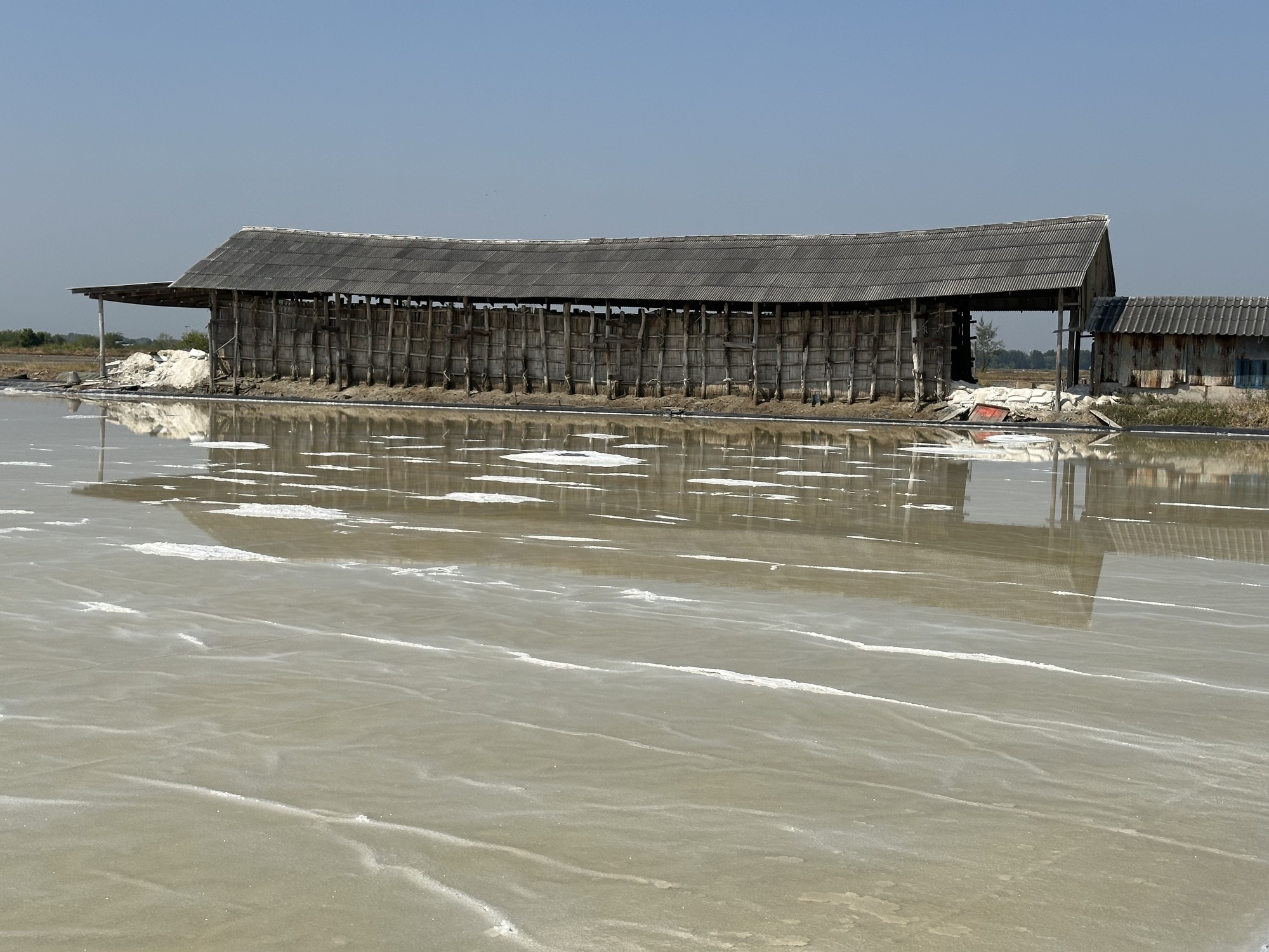 It became readily apparent as we slowly escaped the pull of the outer limits of a megacity that Bruce was not doing so great. Yes, he still pulled short to take photos but this part of Thailand is famous for being kind of strange, pancake flat, few trees, vast acreage of salt farms, where they pump seawater in to evaporate in the sun. It’s still a little early in the evaporating season, it wasn’t that long ago that torrential rains had flooded neighborhoods that still sported abandoned sandbags.