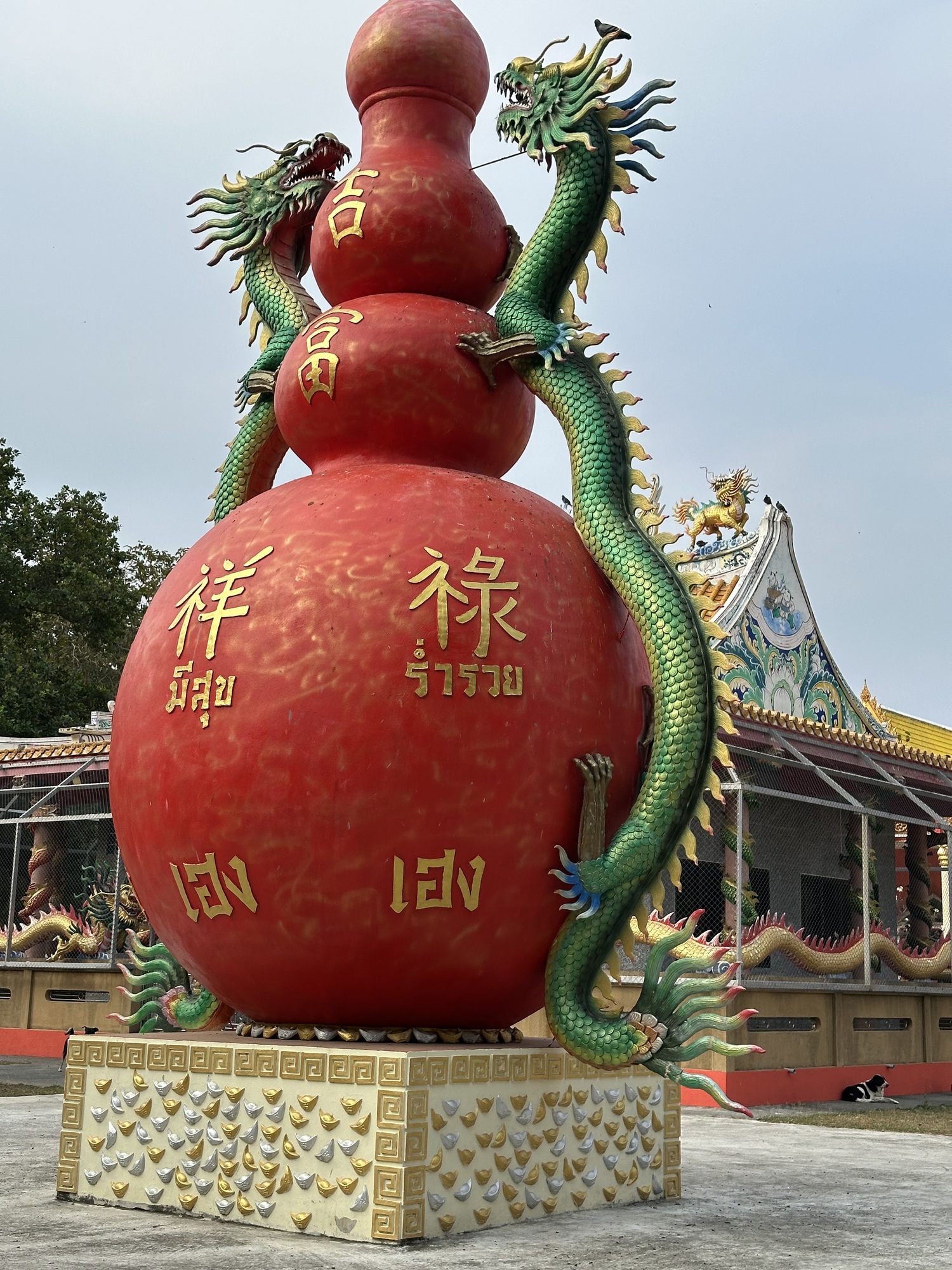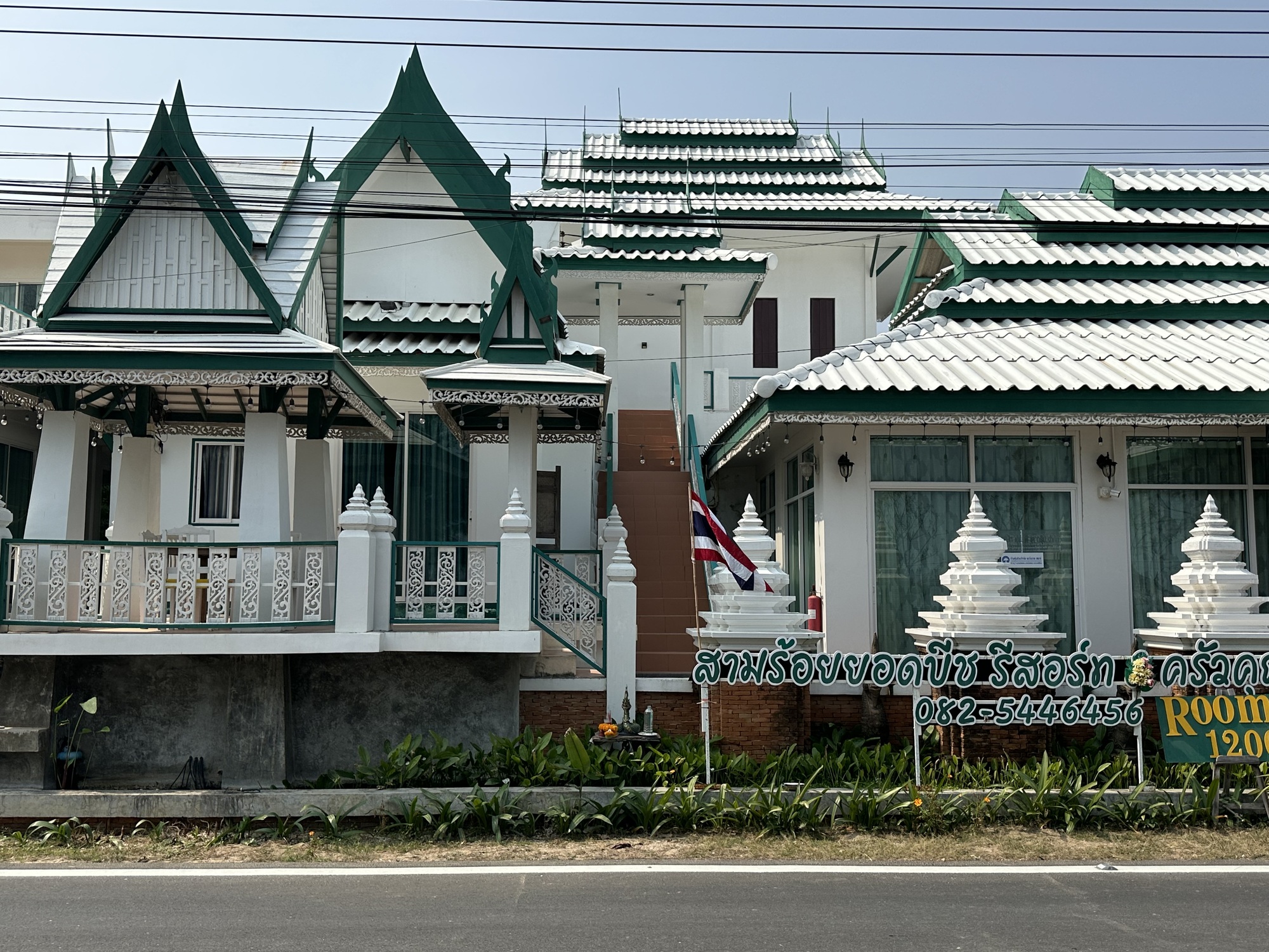One of them we always find memorable in a bizarre way is the Villa Maroc Pranburi. It’s a Moroccan-styled building, very luxurious, $150/night which won’t get you a room at the Hampton Inn in Bozeman but is very posh pricing in Thailand. We don’t get to see what riches lie within but we know this: the bellhops wear fezzes. I’ve never been to Morocco, my direct experience with fez-wearing is seeing Shriners in tiny cars riding down Mineral Avenue in the annual Logger Days Parade. Seeing them on young Thai fellas at the gate of a faux Arabian Nights place is pretty amusing.