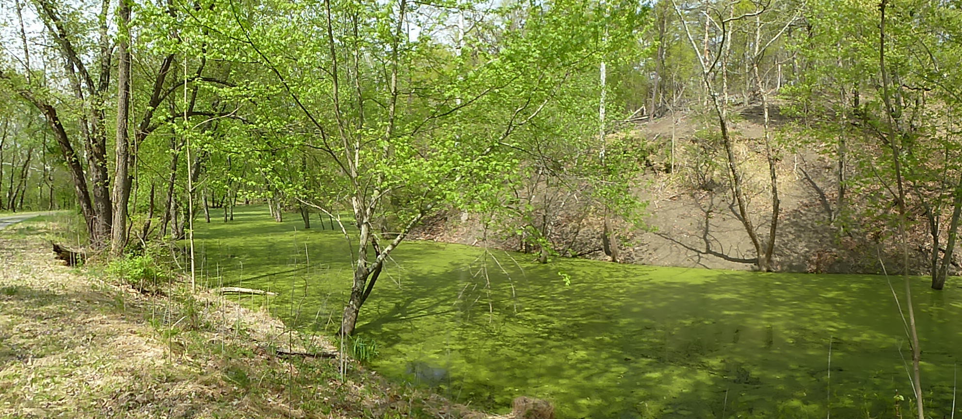 The path had dried and I had it to myself, an occasional angler, and several dozen black turtles sunbathing on logs. They plopped into the water as I neared them, otherwise I'd be showing you a picture.