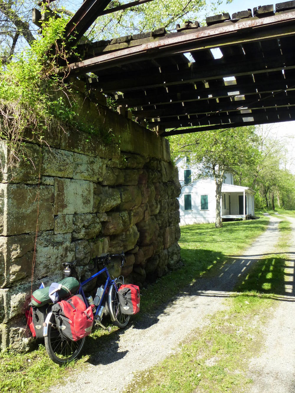 We'd stopped there, Chris Ogden and I, after riding the last kilometres of the C and O bikeway, which ends in the town and immediately becomes the Great Allegheny Passage. Chris had written out of the blue to offer me a bed for the night and had ridden back the way I was heading to collect me. We crossed where the bike path stumbles across a road and vanishes off at a slight dogleg on the other side.