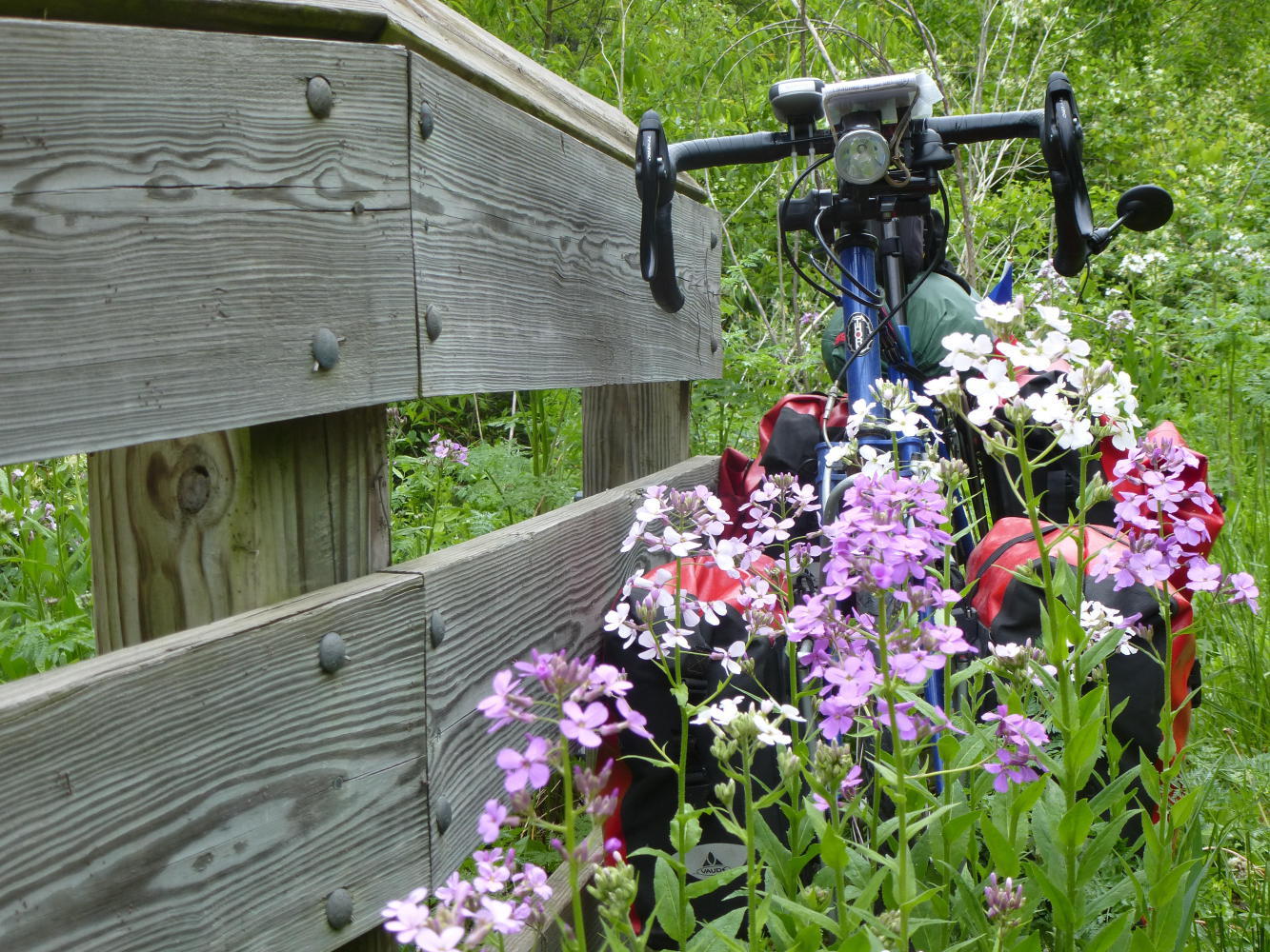 I was heading for London, where I knew there was no campground but there were motels, and I was riding a smooth and slightly rising bike path created from one of the tracks of a railway which still caters to local businesses. It was getting late, it was starting to darken, and rain was waiting with impatience,