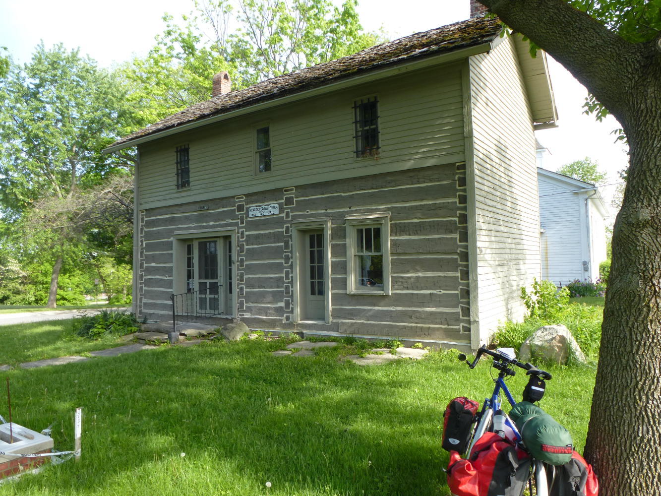 I left him in the growing dawn and set off along the main highway west, the National Road, a Route 66 from coast to coast but without the romance. It was fine, an exercise in getting somewhere, with the pleasant interlude of the old wooden jail in Greenfield, where the lack of steel for cells brought the ingenuity of hammering metal spikes into the wood so prisoners couldn't saw through.