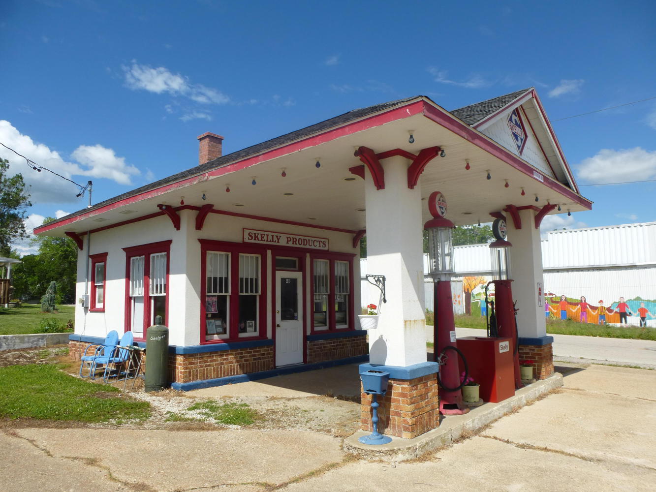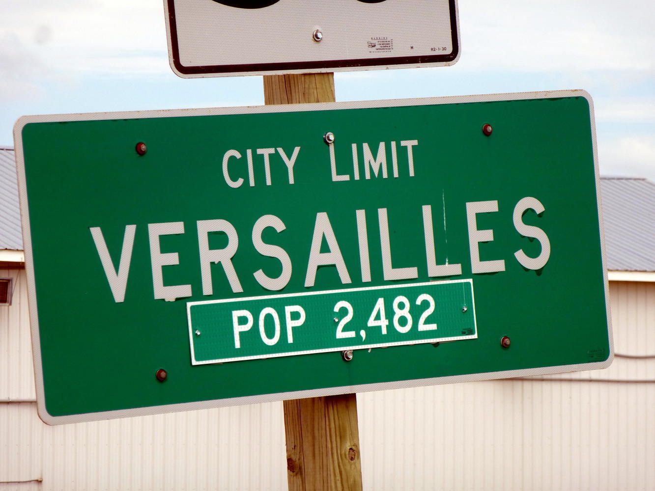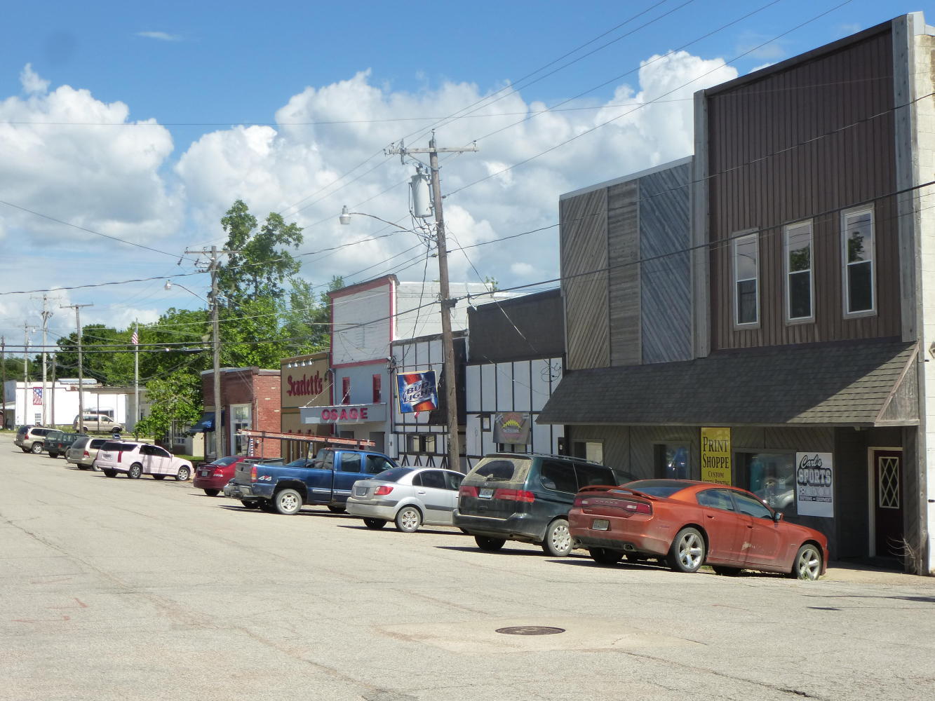 I passed through busy Versailles, named after the royal French city but pronounced Ver-SAILS and soon after that into Stover, which has a gas station from the 1930s in its main street.