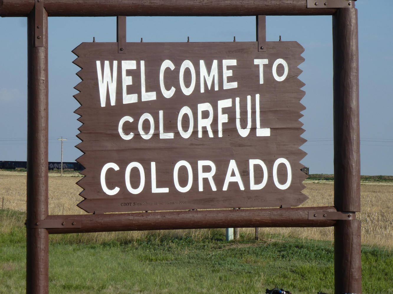 The wooden sign for Colorado comes at a slight curve in the road, just after