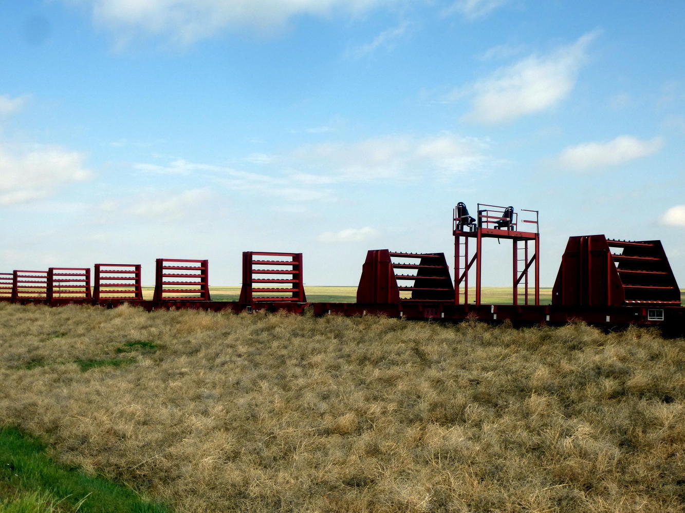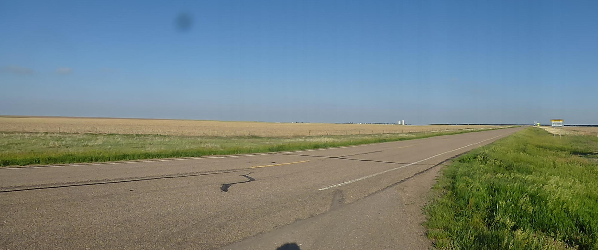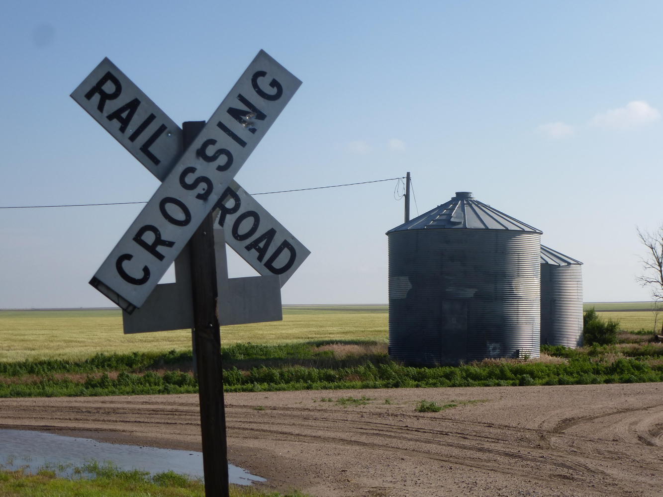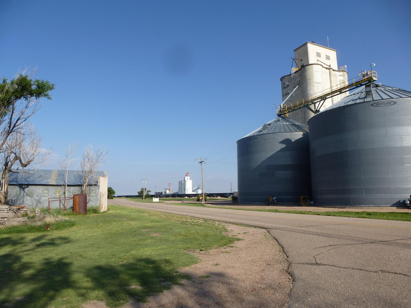 We got to Sheridan Lake after crossing into Colorado early this morning. The wind hadn't been as hard against us as we'd feared but it still blew dust clouds across the road and filled our nostrils with soil. This was a century after the Dust Bowl and nothing like what the region experienced then but it was easy to imagine how it had been. And how people fled. Especially when, out of one billow, chugged a man on a tractor little larger than a lawnmower, pulling two home-made wooden trailers, the first like a pigeon hut and the second bearing a board painted "Jesus Saves."
