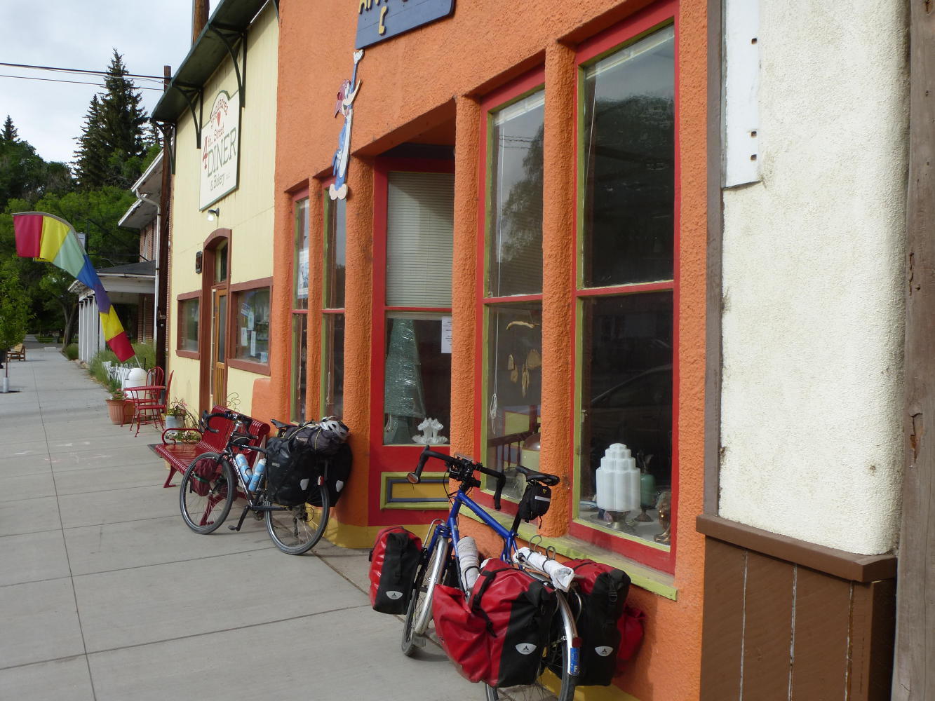 We got up at dawn to escape the heat and to beat the headwind that's been nagging us these past days. In the event, the sky was covered and the wind had turned in our favour. We bowled through more arid countryside with dispersed, single-storey homes distant along unmade racks, and rode 80km by late morning.