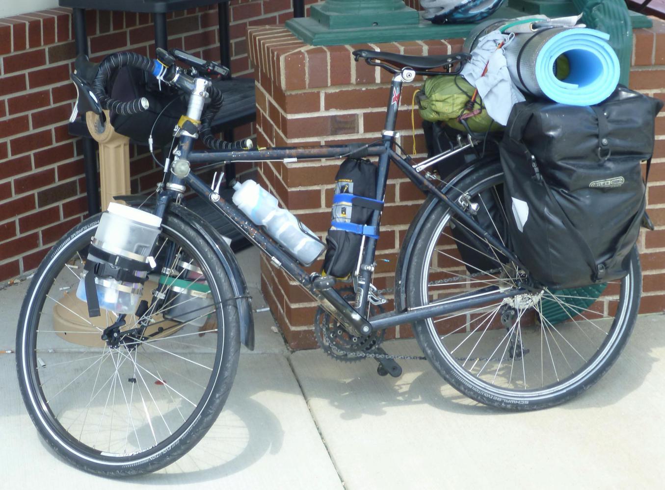 Overall I like the system and it is pretty light weight. What I liked was the easy access of the screw on tops. I carried my bike tools, tire changing stuff, extra tubes, a lock, first aid kit, and things like that would likely not change weight as I moved down the road.