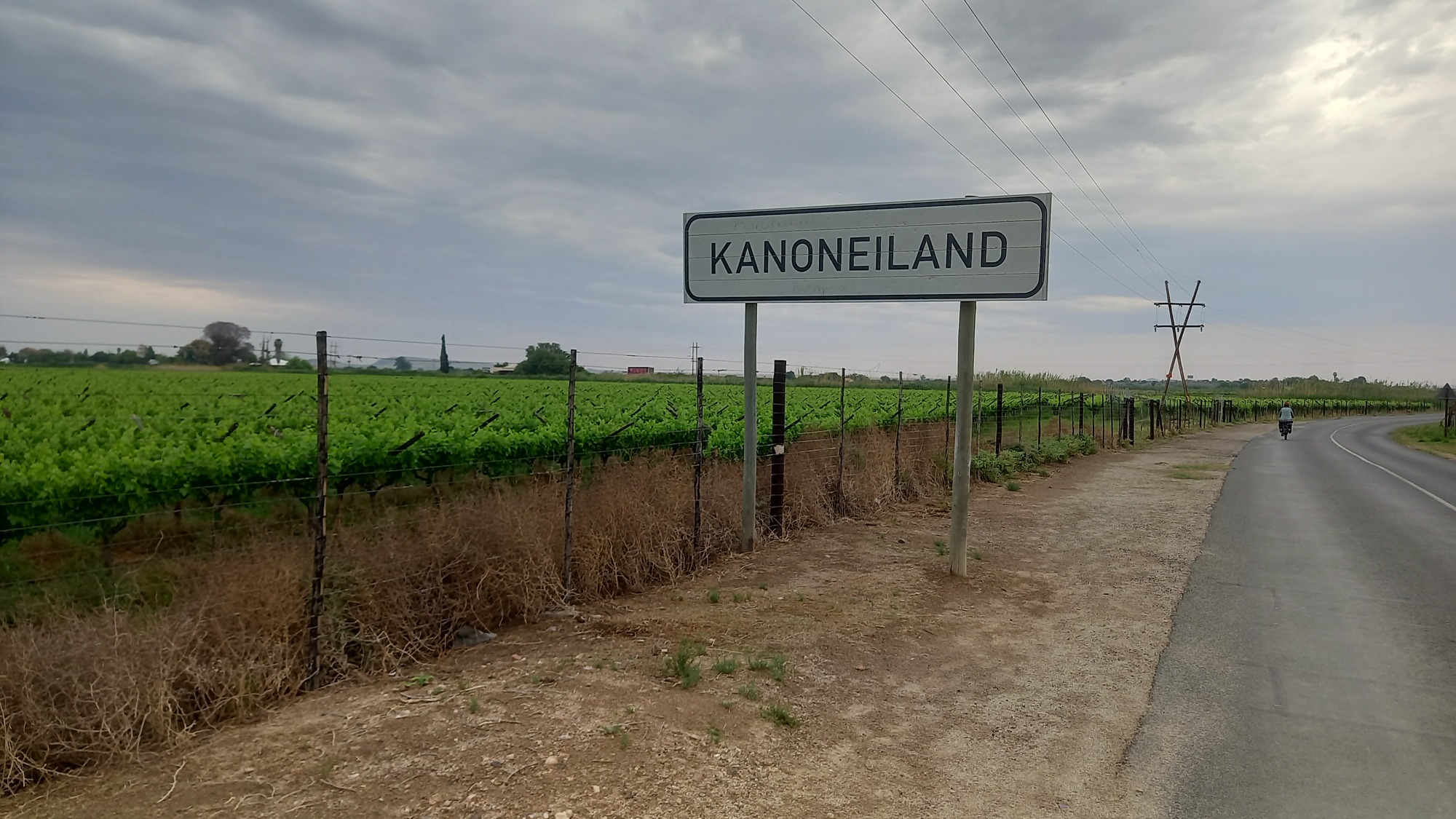 There were still a few drops of rain around when we woke up but not enough to delay our departure. We were on the road soon after eight and headed up to the R359, the main road between Upington and Louisvale on the south side of the river. At Bloukop we turned north and crossed to the N14 Using the road across Kanoneiland. Kanoneiland (Canon Island) is a large island in the Gariep between Upington and Keimoes