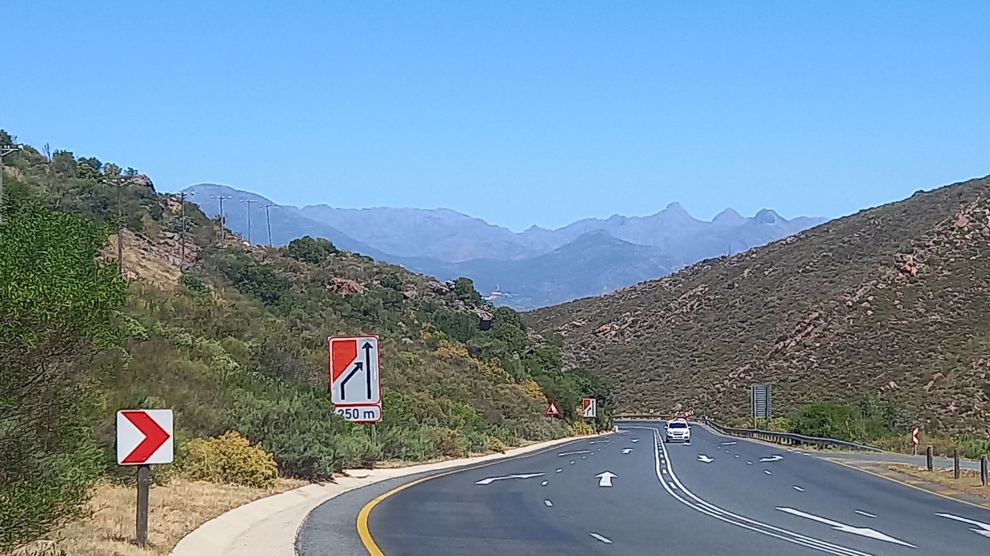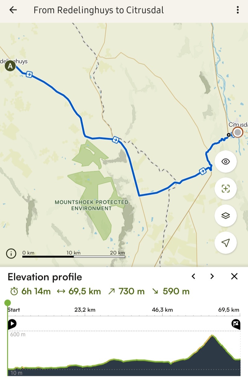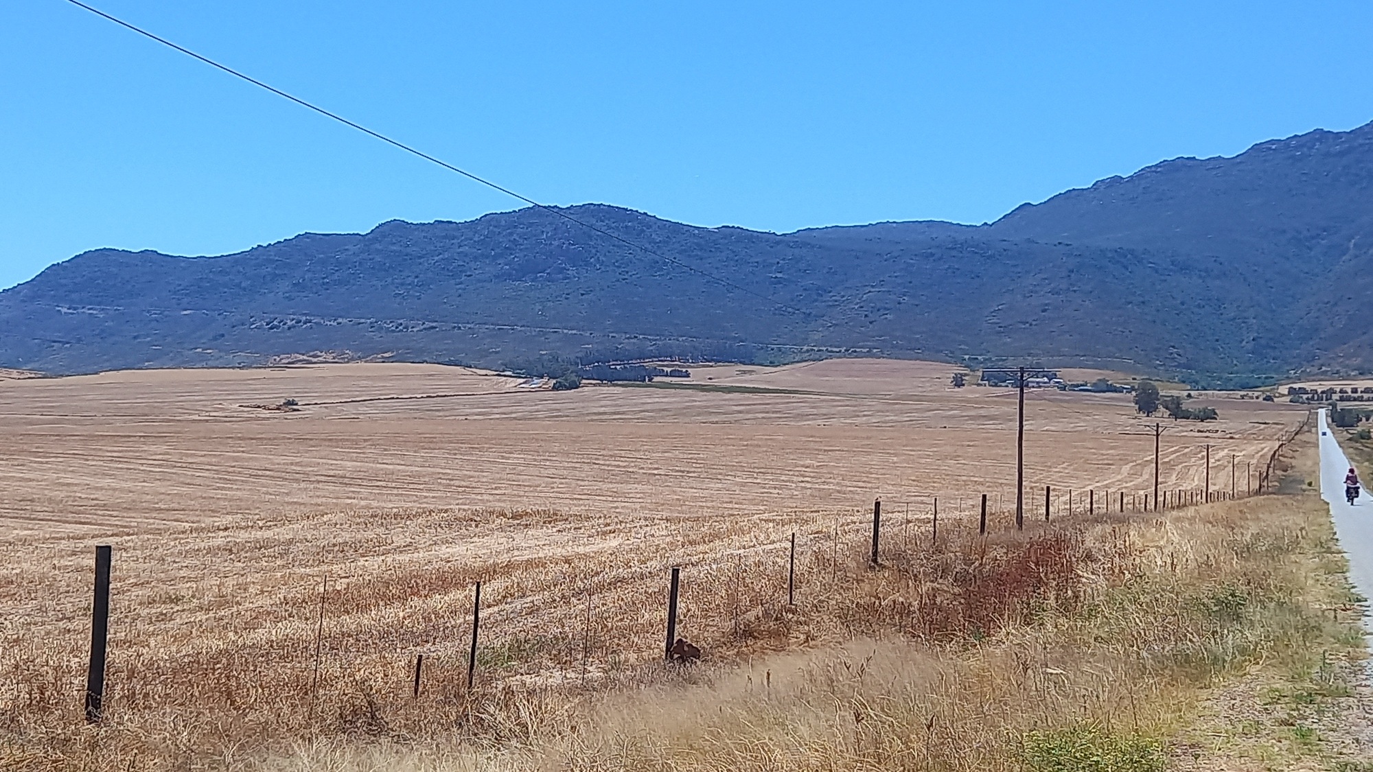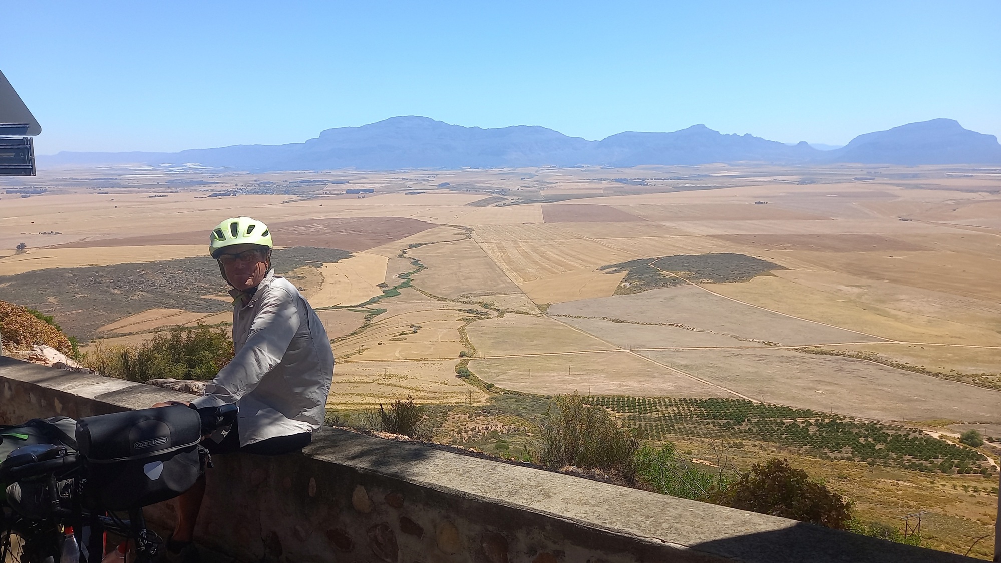 We were in the saddle before six thirty after an enormous breakfast laid on by our energetic hostess. A strong south-easterly wind made for hard going until we turned north-eastwards at the forty kilometer mark. We enjoyed some respite until the village of Eendekuil from where we started the climb up to the top of Piekenierskloofpas. Sensibly, Leigh walked much of the way up the climb but she was pretty knackered by the time we rolled in to Citrusdal.