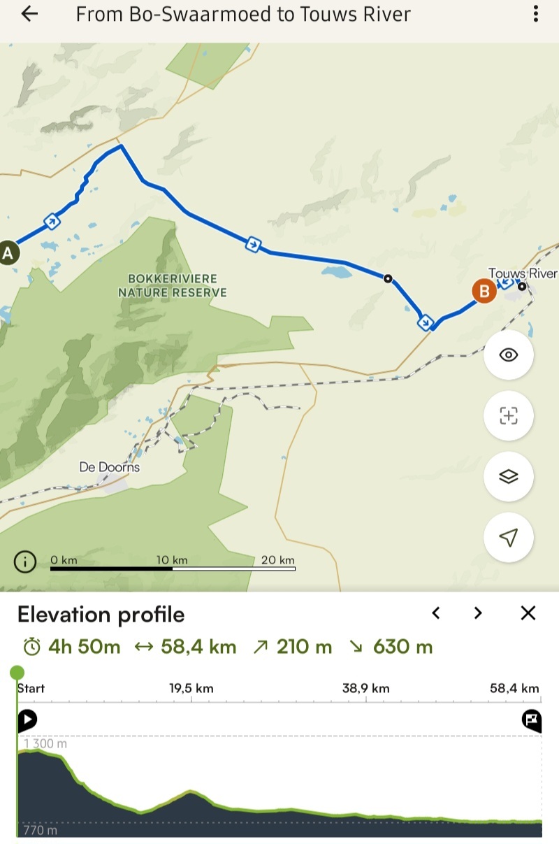So now we have a longer-than-we-wanted ride to Laingsburg where accomodation was also difficult to secure. We managed to get a room there for the next two nights (a rest day is called for) at which point we will need to decide between carrying on further along the N1 or heading southwards to the Little Karoo.