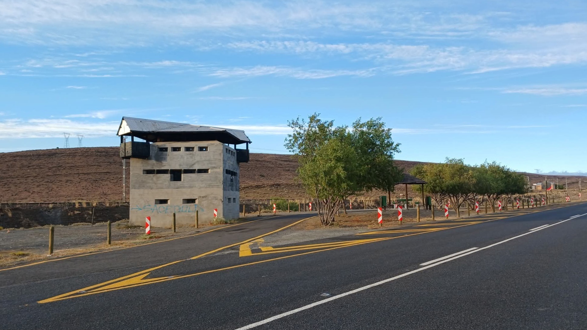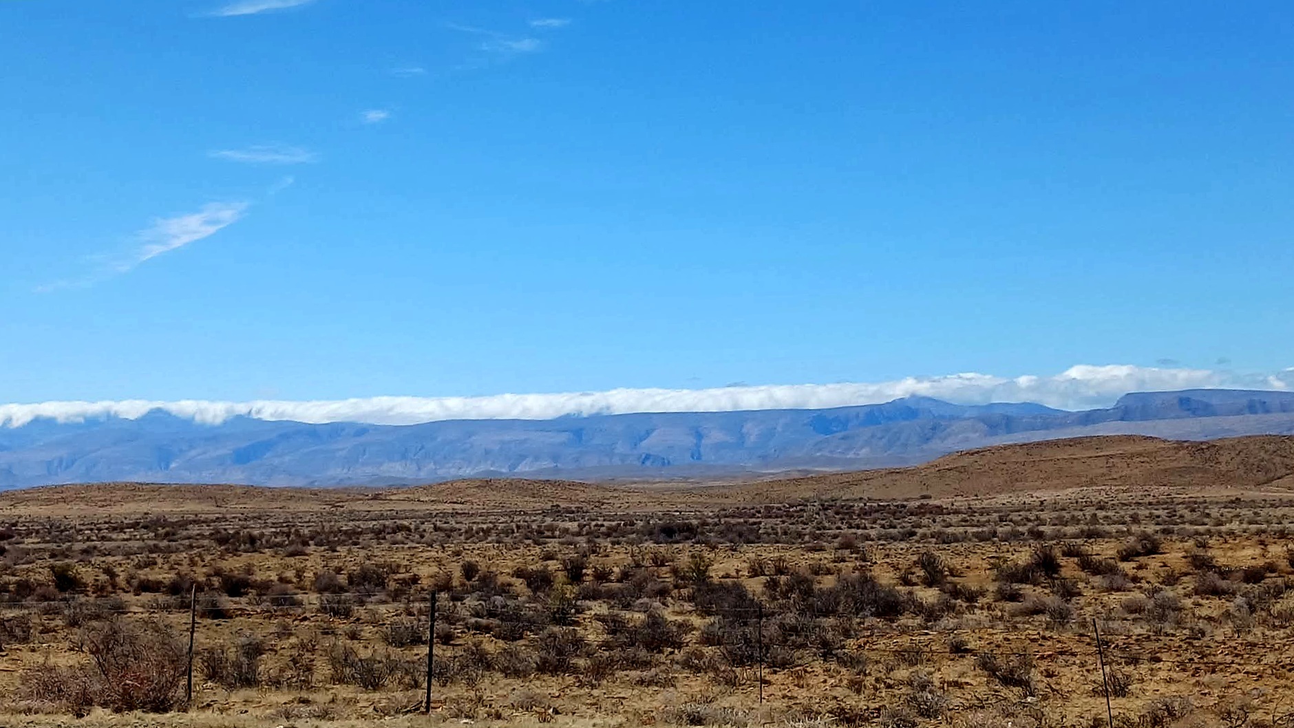 There's not much to see on today's section of the N1 apart from the dry veld of the Great Karoo fringed by the Swartberge in the south and the Nuweveld Mountains in the north. So with strong winds predicted for the afternoon we managed to hit the road by five thirty, arriving in Prince Albert Road before noon.