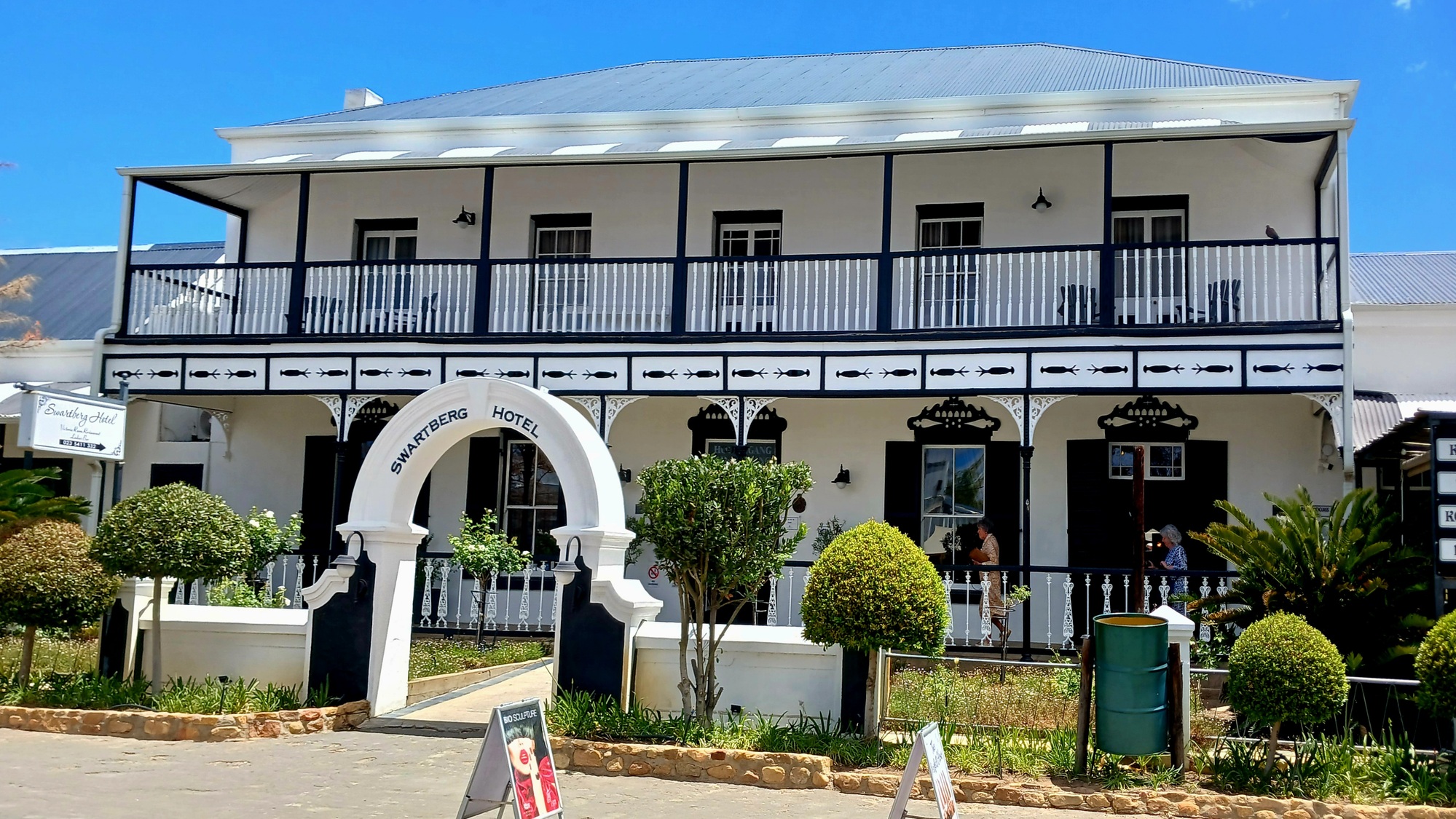 After a bit of to-and-froing, we finally settled on a very nice guesthouse for the night and wandered off to have a very nice and rather liquid lunch at a restaurant attached to the Swartberg Hotel, one of the many attractive old buildings in the town.