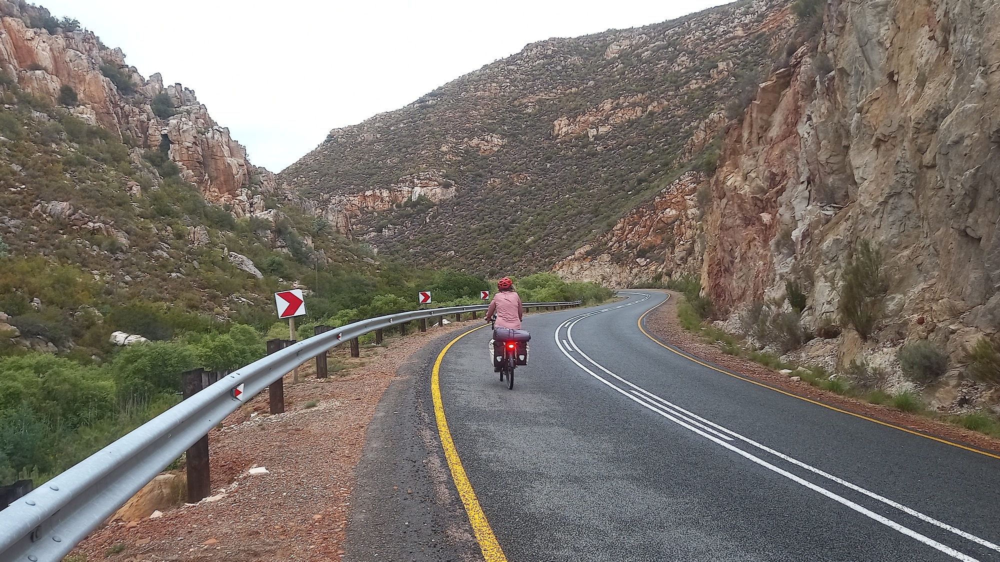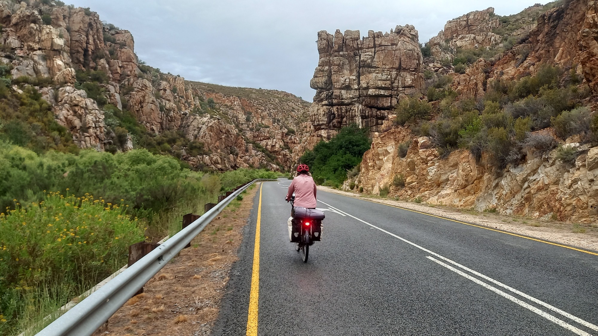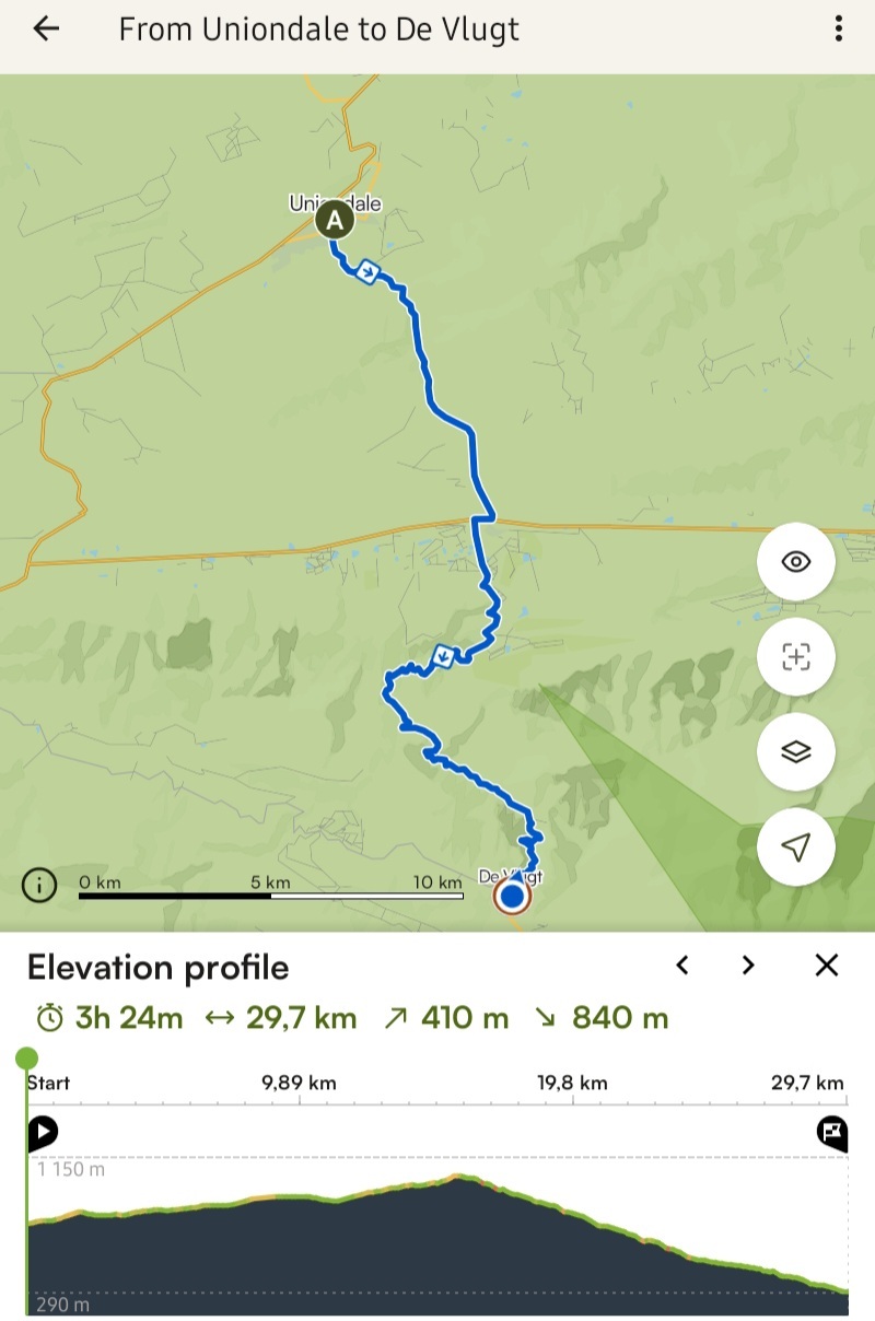 At Avontuur the tar came to an end and we will ride on a gravel road until we reach the coast tomorrow. Initially there was a stiff climb but then we descended steeply down to De Vlugt through the Prince Alfred Pass.
