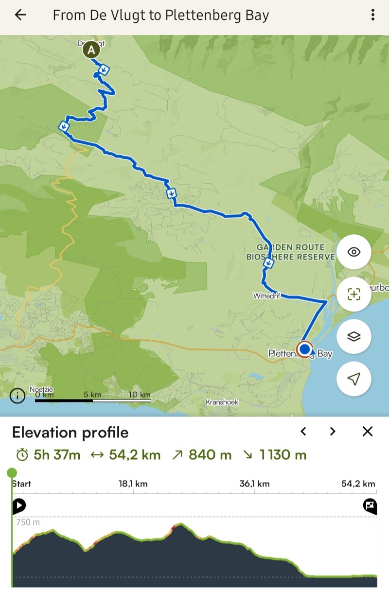We are only about 230 kilometers away from home if we head straight down the N2. In January 2021 we did that section in three days but this time we have some terrible easterly winds forecast for Thursday and Friday so realistically we need four days. There is very little accomodation available along the route but on a whim I phoned a coffee shop not too far east of Storms River and persuaded the owner to let us camp there on Thursday night which allows us to do shorter distances on the two windy days.