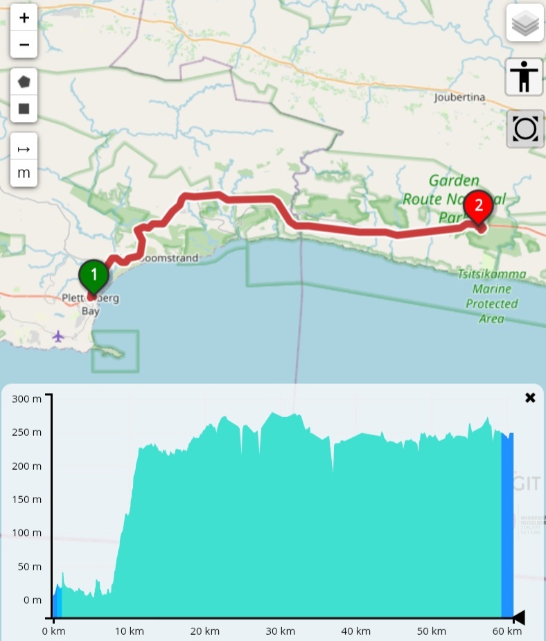 We are into the home straight now and the next few days hold nothing of interest for us. About two hundred and thirty kilometers, the overwhelming majority on the N2, but we will just have to grin and bear it.