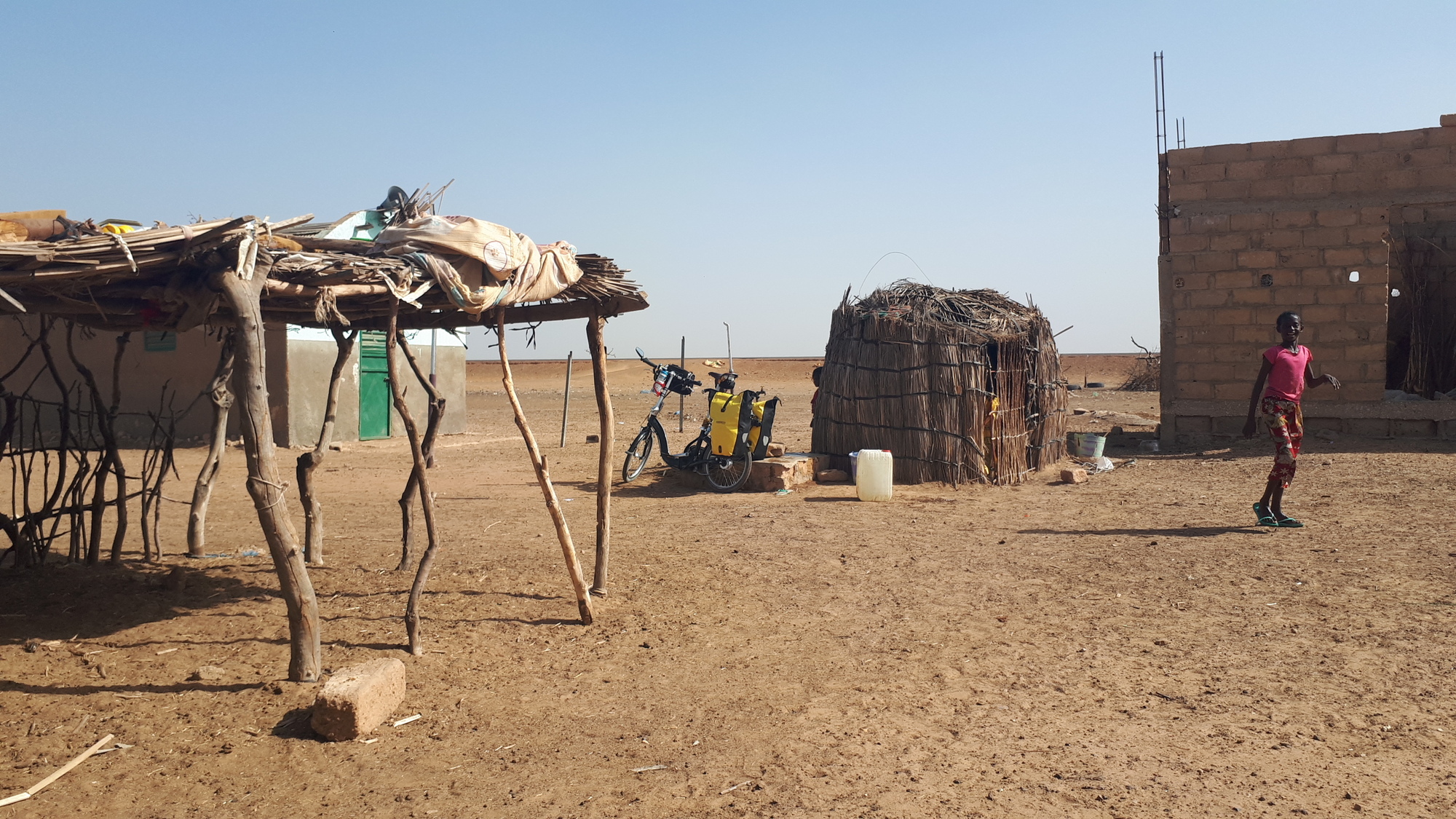 Enfin libre, je me sens pousser des ailes sur le vélo avec le vent dans le dos. Je m'arrête dans un resto pour mettre mon cuissard. Je parcours 49 kms et je m'arrete dans la petite ville de Ross Bethio. Une charmante personne qui tient une boutique Télécom m'indique un hôtel, un bon rendroit pour manger un Thiéboudienne et une autre boutique de téléphone où il y a une connexion wifi.