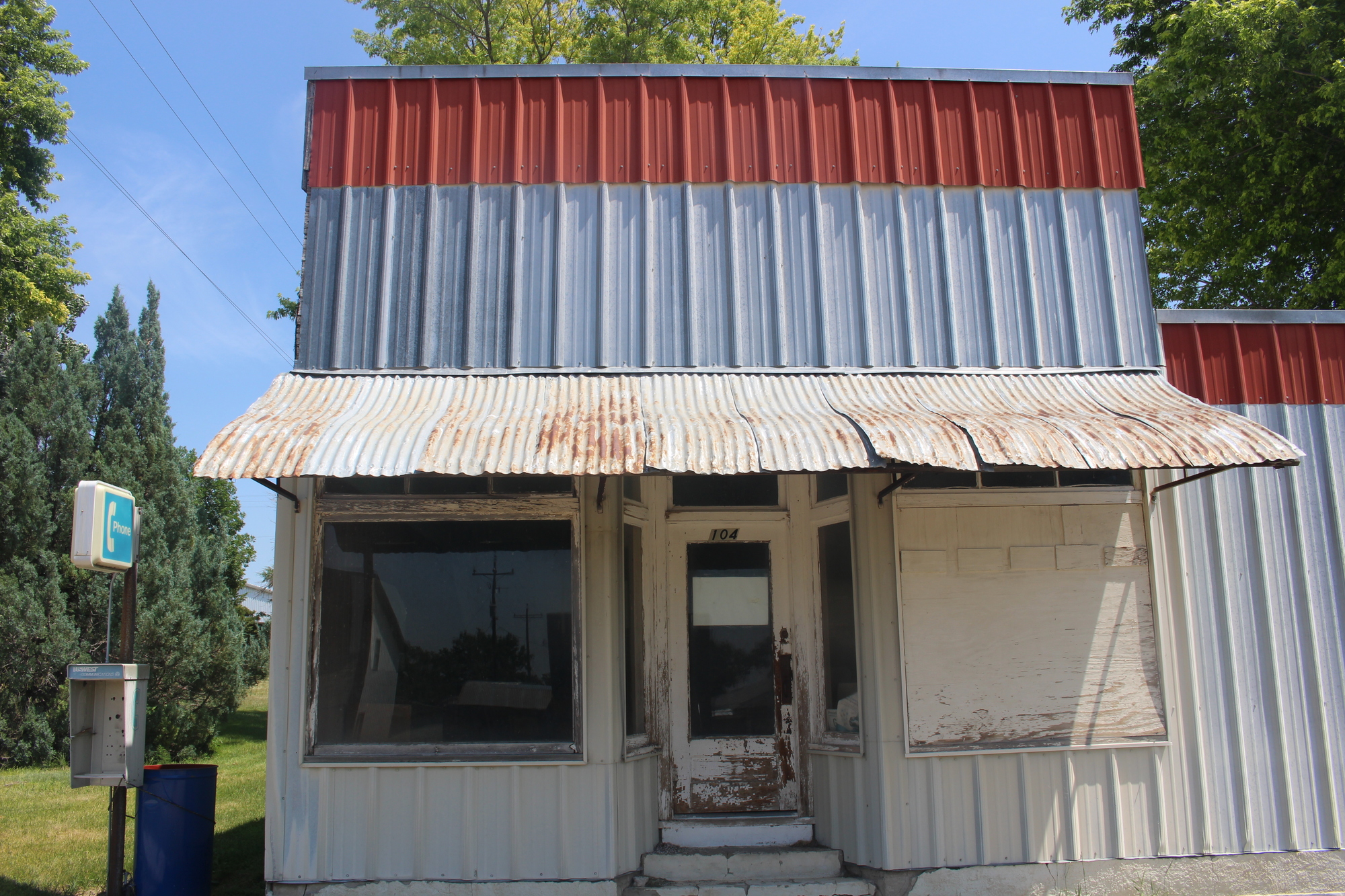 I arrived in Merriman, population 128. The farm supply business was still open, as it had been in 2019. I walked in asked the lady there if she had any snacks for sale. She directed me to the gas station a few hundred feet away. I'd had an unpleasant experience at that gas station in 2019, so was hoping I could get snacks and a cold drink somewhere else this time. I walked around tiny Merriman and took a few photos while I pondered things.