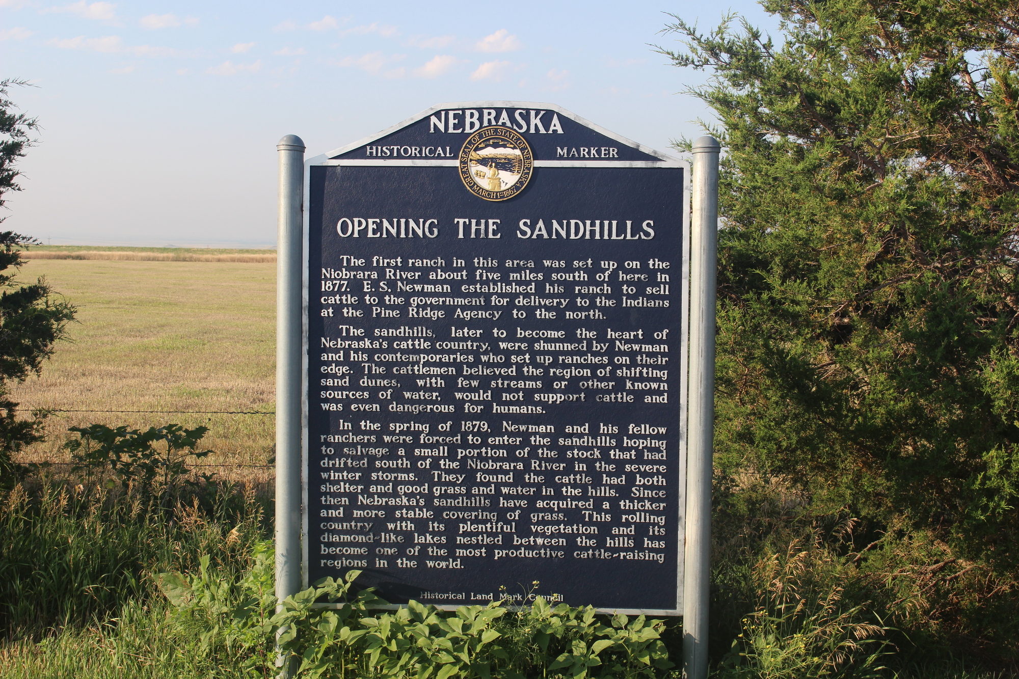 Back on US-20, I headed to the next town, Merriman. Unlike the last few days, there were a few trees along the road that I could get under for shade.