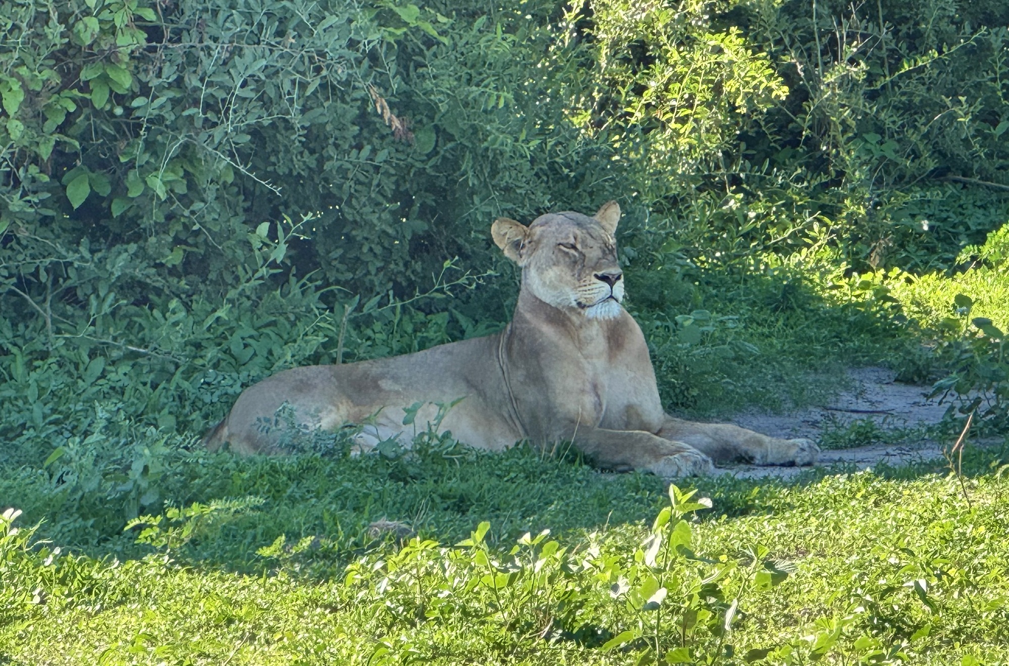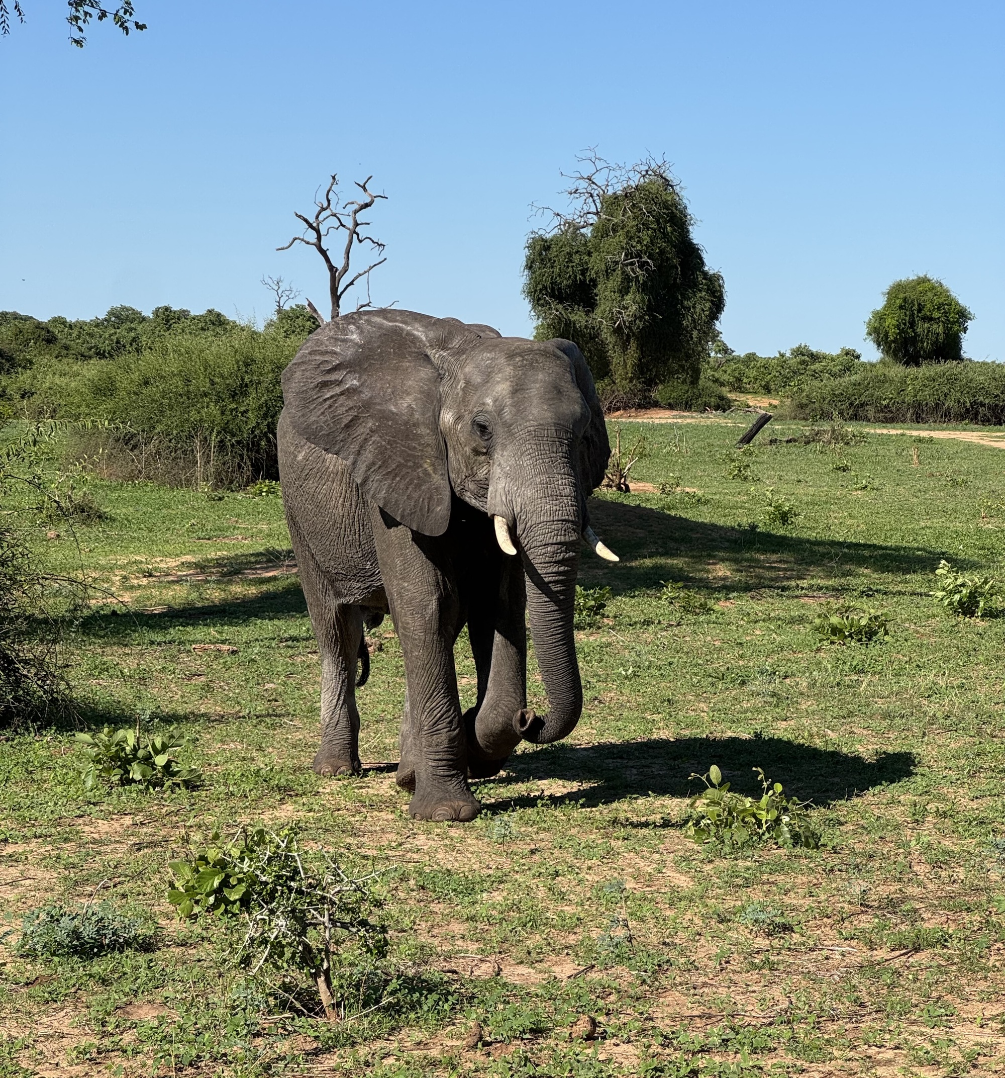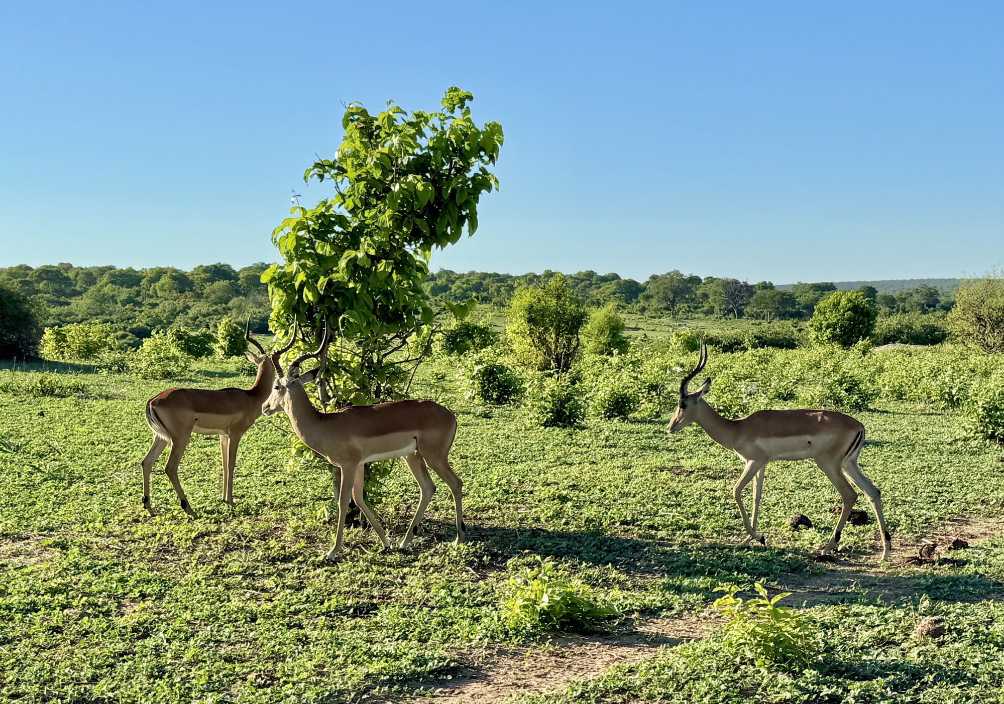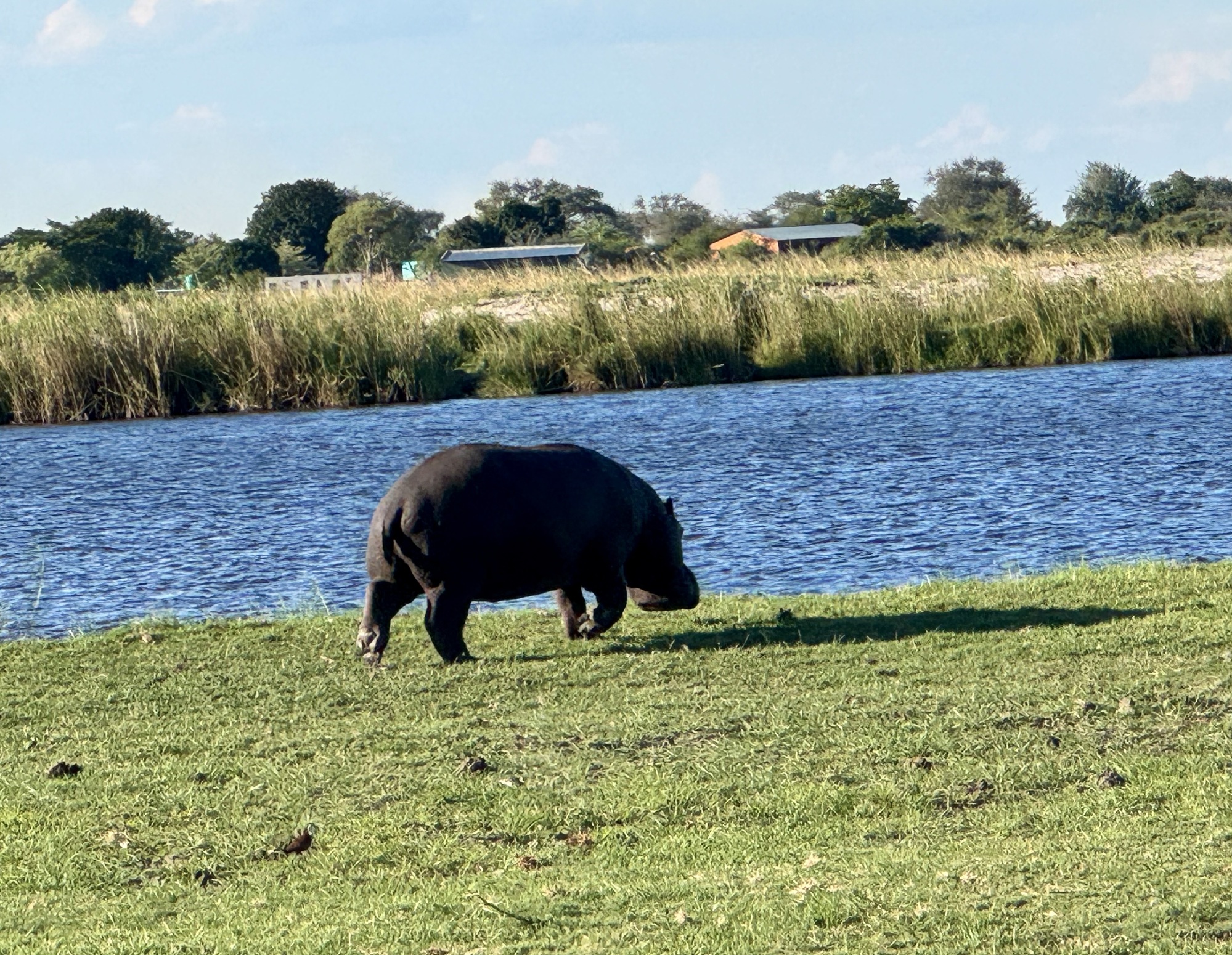 Today started early getting up at 5 for a 6am safari in Chobe NP Botswana. We were in an open Land Rover with theatre seating so everyone had a good view. The roads a really rough so we were bounced around a great deal. It took a while before we spotted animals but given that this part is 11,000 sq kms the animals could be anywhere. Mostly we saw impala but eventually we found baboons, a lioness and one elephant. There has been rain here recently so most of the elephants are at watering holes in the bush. Apparently there were more lions but they had taken cover by the time we got there. After our 3 hour safari we came back to an amazing breakfast complete with mimosas.