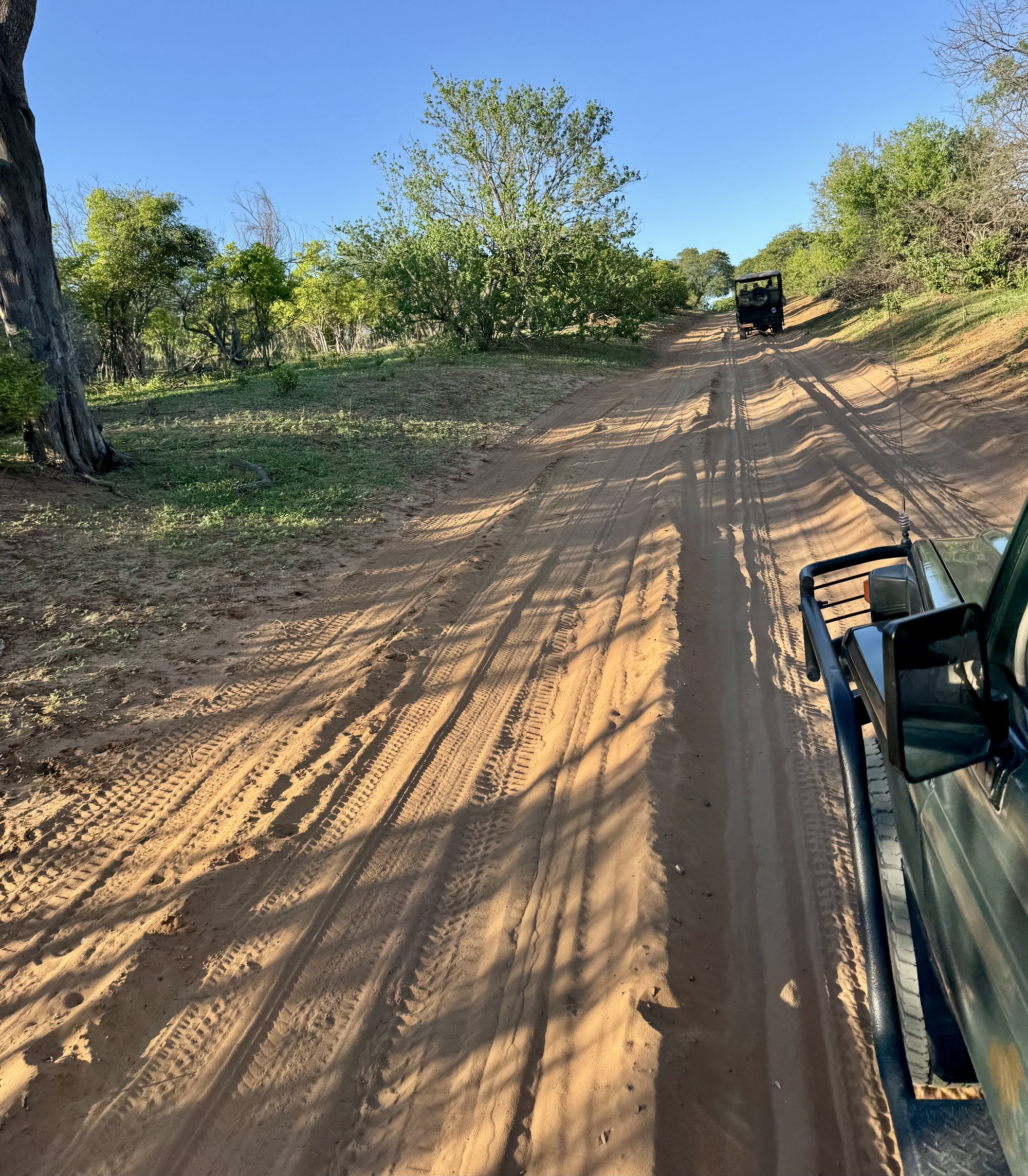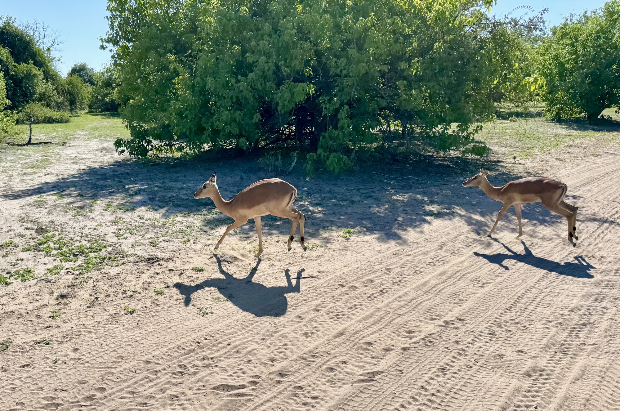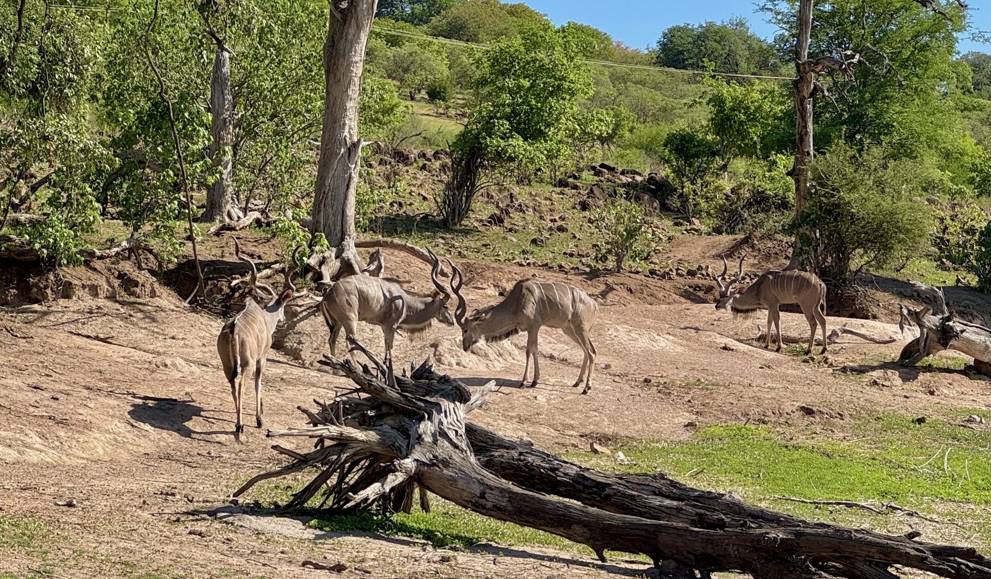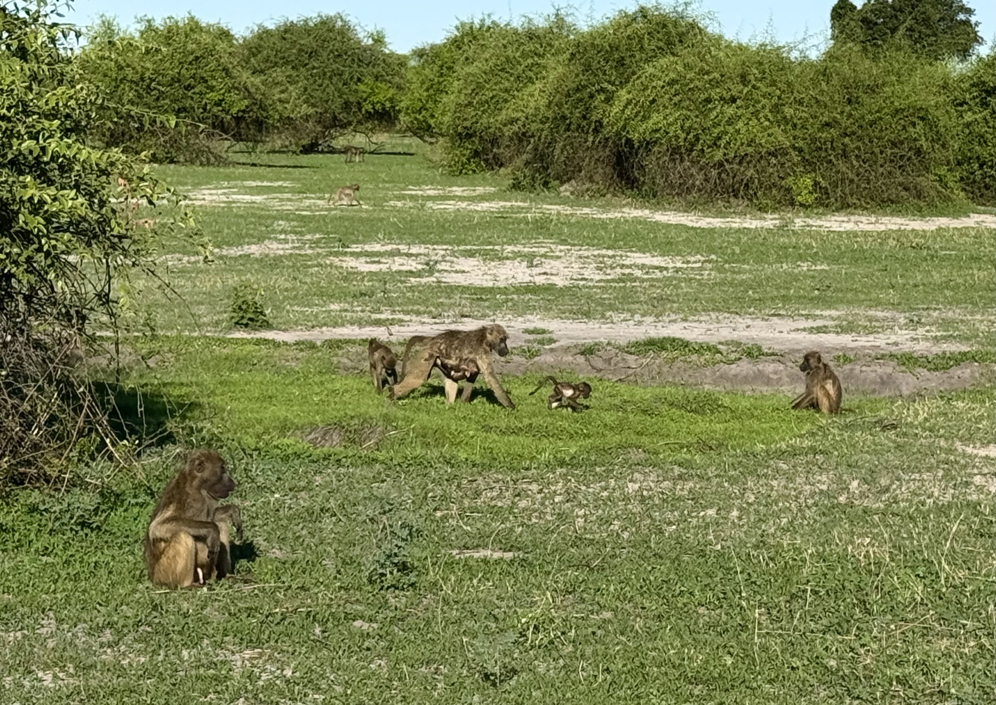 Today started early getting up at 5 for a 6am safari in Chobe NP Botswana. We were in an open Land Rover with theatre seating so everyone had a good view. The roads a really rough so we were bounced around a great deal. It took a while before we spotted animals but given that this part is 11,000 sq kms the animals could be anywhere. Mostly we saw impala but eventually we found baboons, a lioness and one elephant. There has been rain here recently so most of the elephants are at watering holes in the bush. Apparently there were more lions but they had taken cover by the time we got there. After our 3 hour safari we came back to an amazing breakfast complete with mimosas.