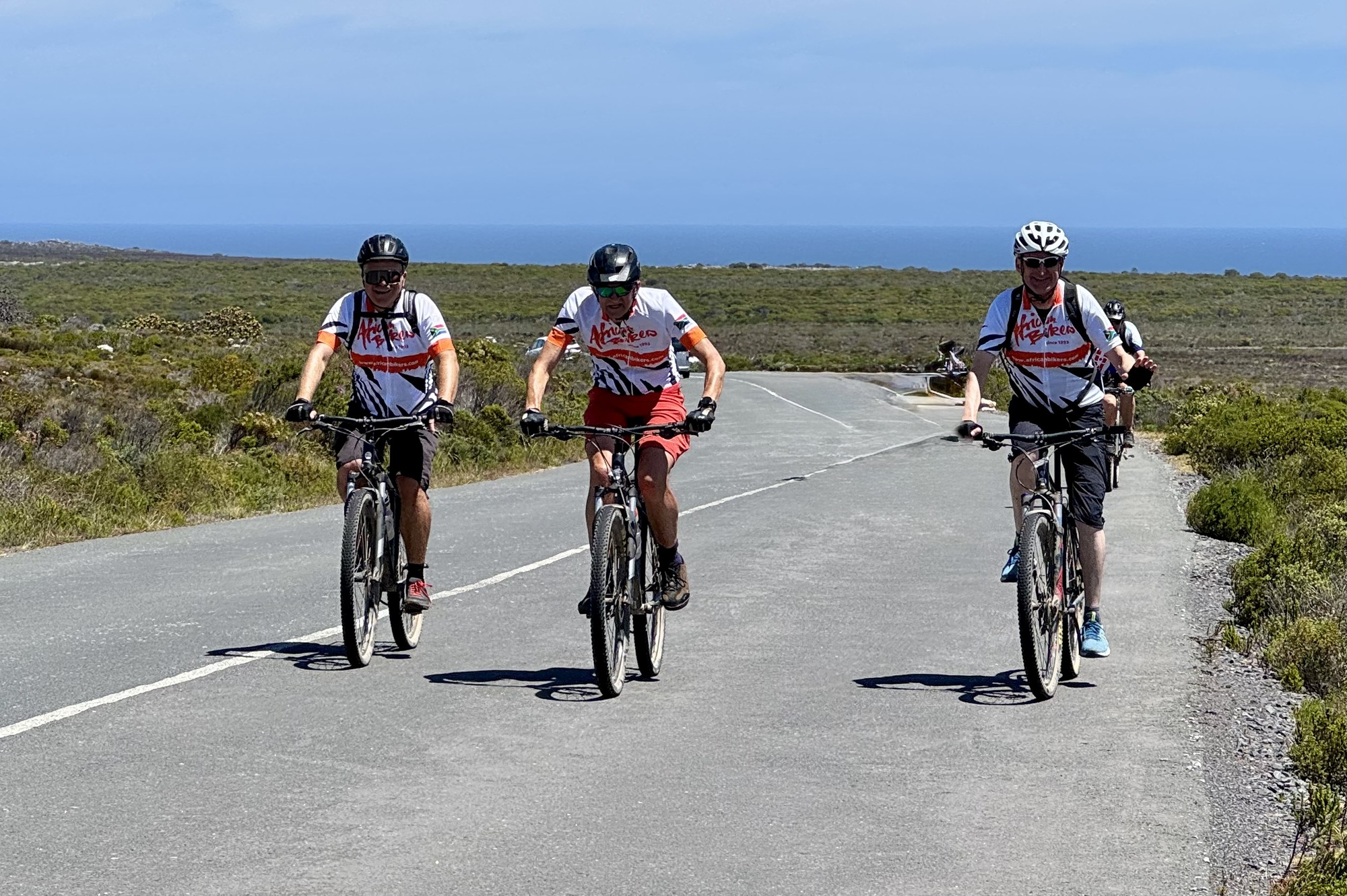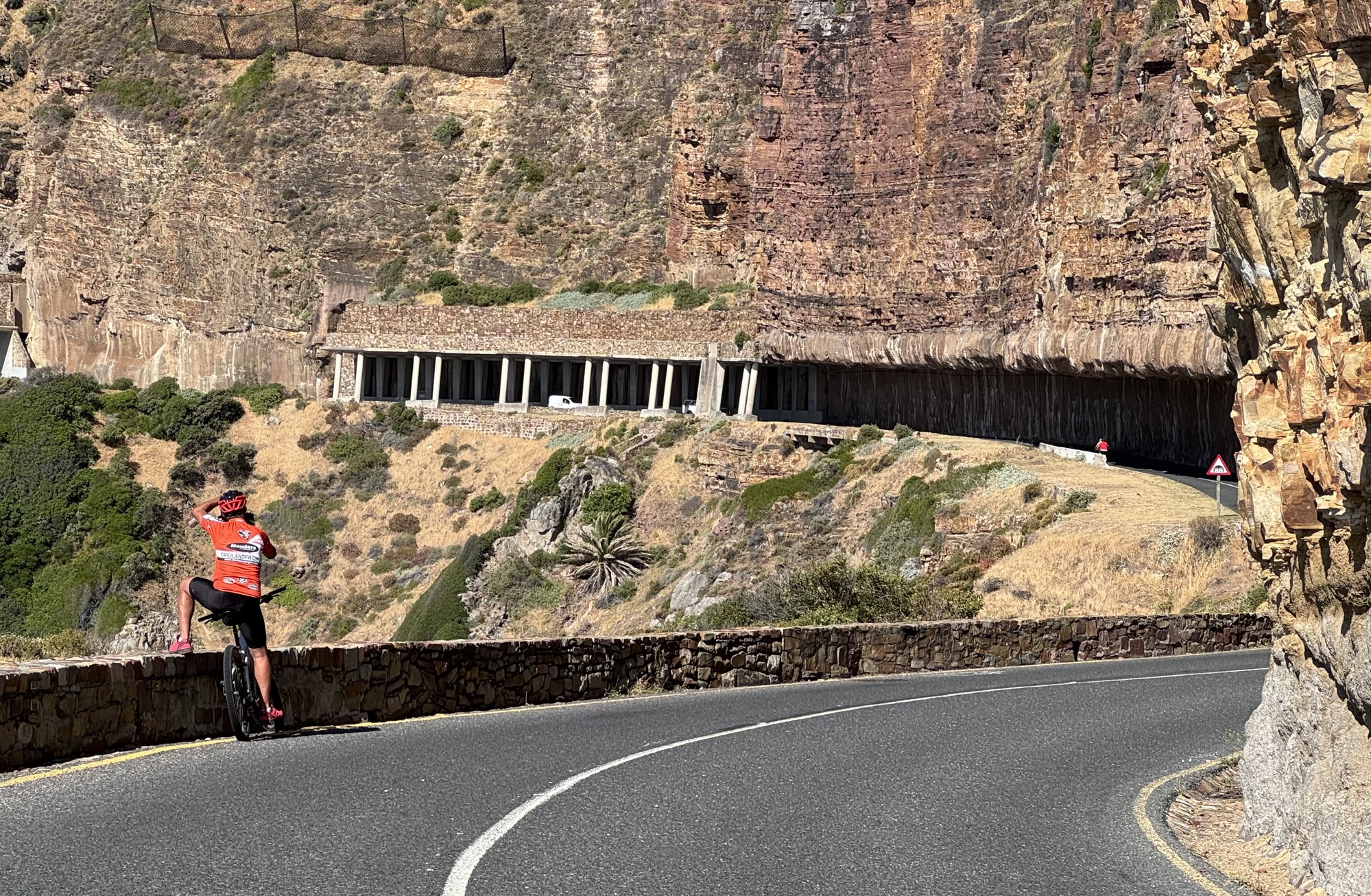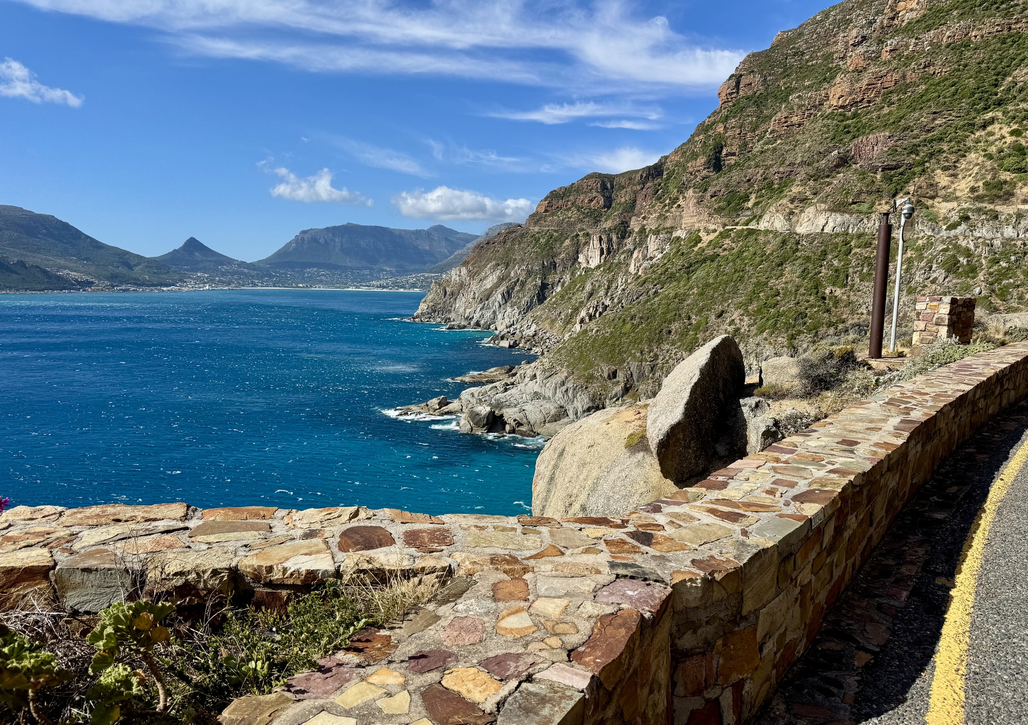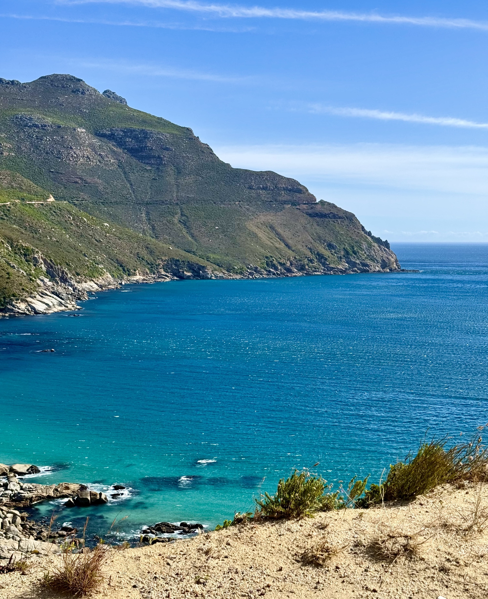 After that we had a long, slow drive to the Cape of Good Hope the most southerly point in Africa. We rode our bikes from here back towards Cape Town over Chapman’s Peak, a road only for cars, no trucks. It was a stunningly beautiful day with another tail wind but with a few strong gusty side winds. We stopped just short to the city to load the bikes for the last time.