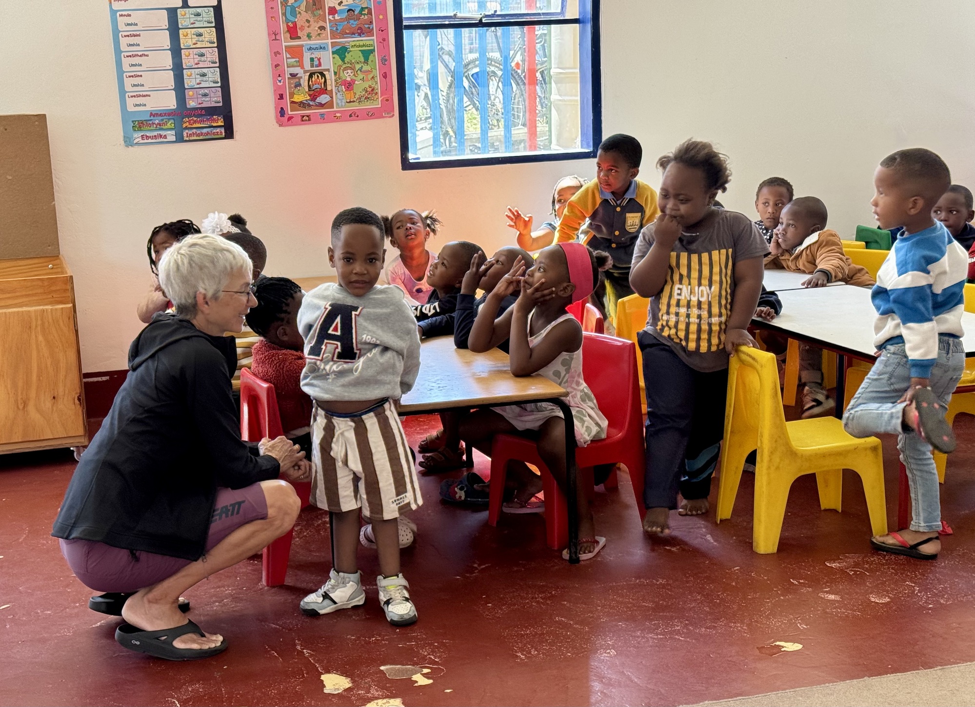 Today was a long but fun day. We started with a visit to a kindergarten in a township, very poor area mostly for the black families. It was started in 1994 by an amazing woman named Mavis who is now 76 years old. She started in her home with 45 kids and now runs a school for 300 aged 6 months to 6 years. She gets a stipend from the government for every child that shows up each day but relies heavily on donations. African Bikers has been one of their benefactors for years. A few years ago a Norwegian man made a donation of 1M Rand that allowed her to build proper classrooms and a kitchen since they feed the kids 2 meals a day. She is truly an amazing woman.