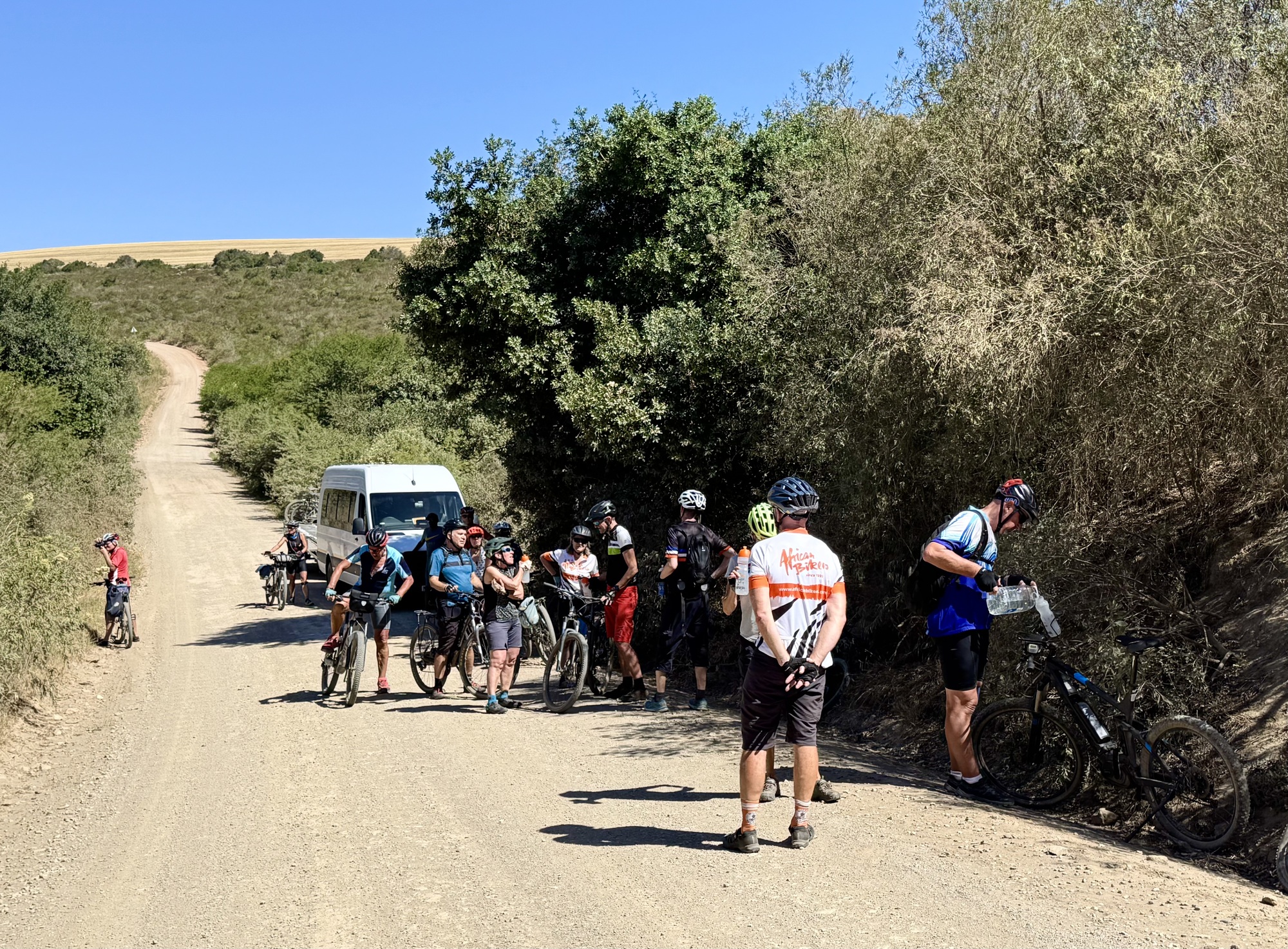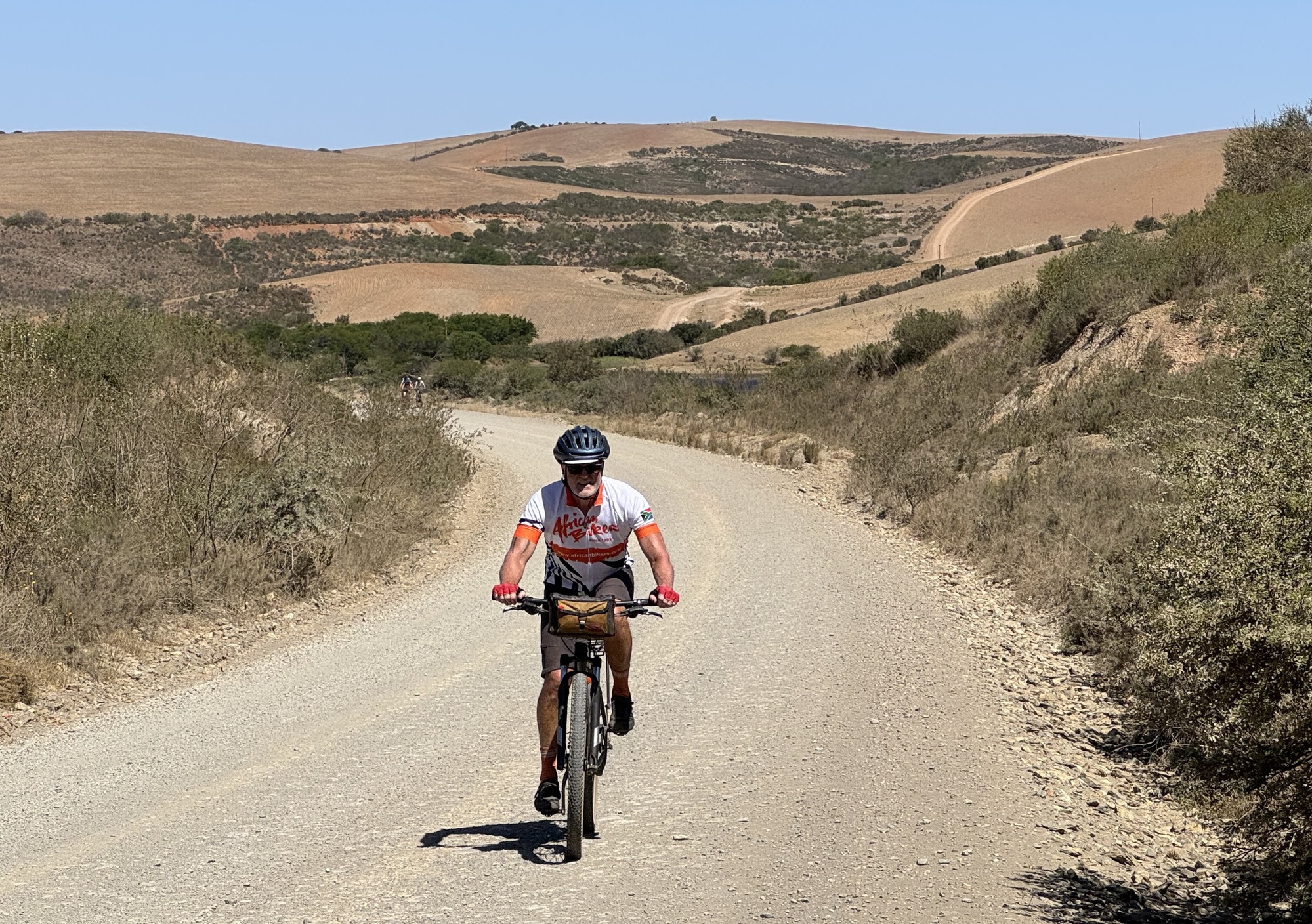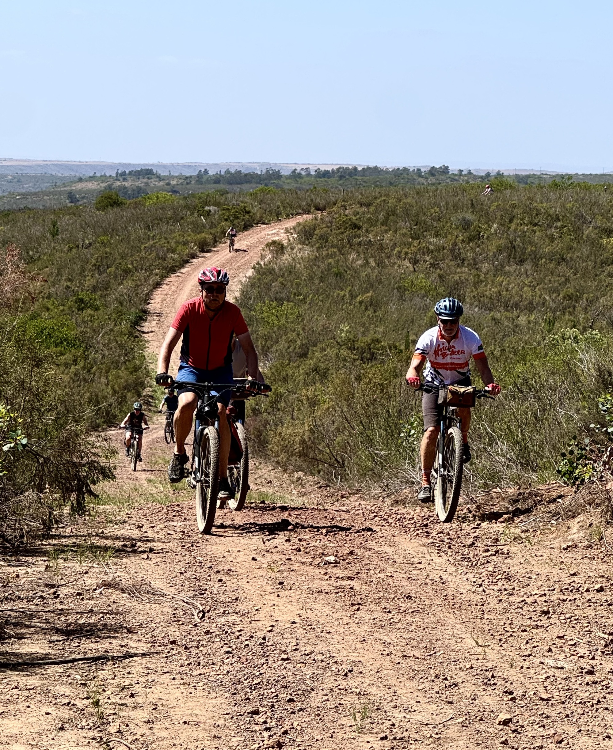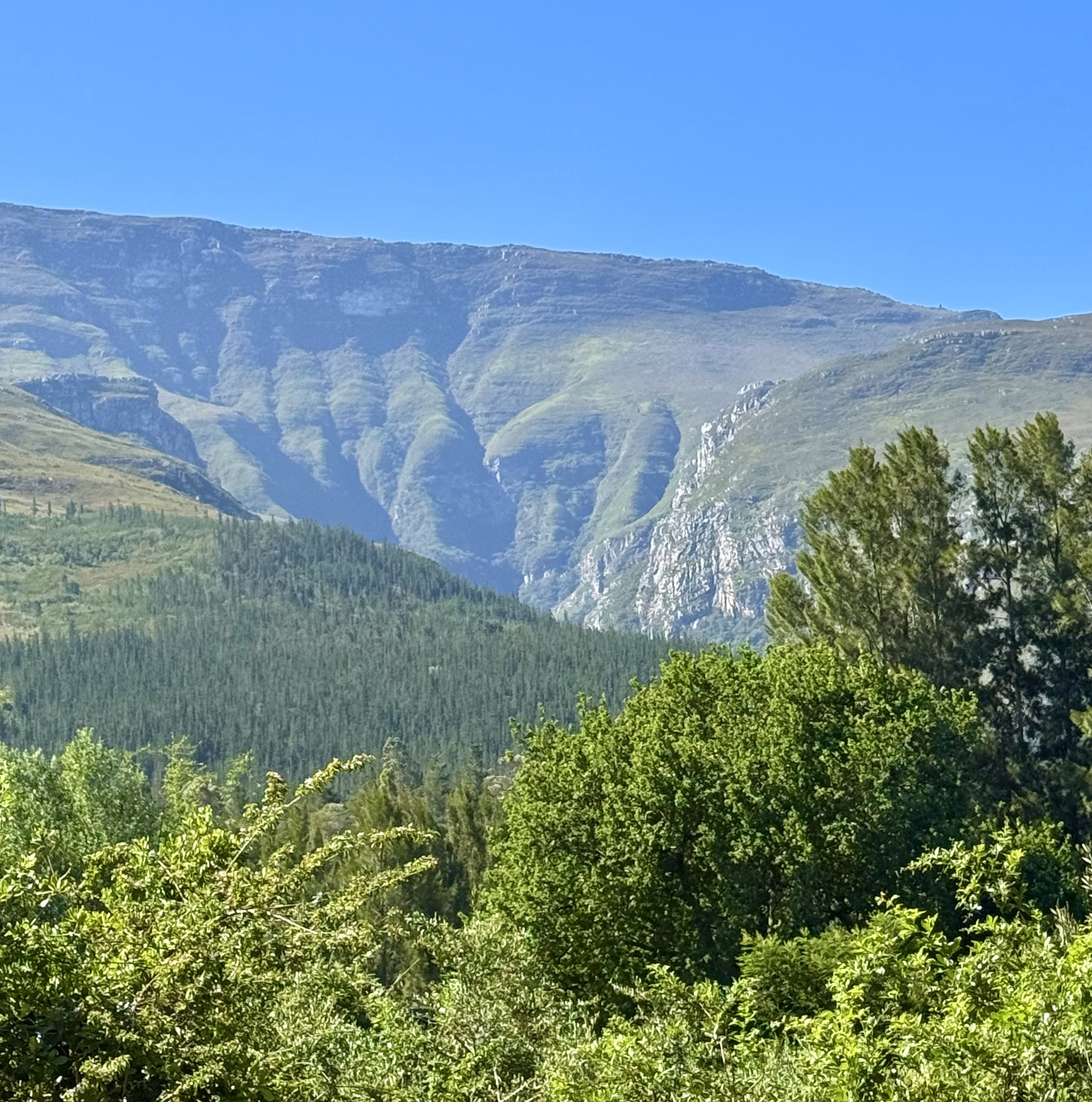 Today was the longest ride of the tour being 90km partly because we missed a turn and had to back track. It also had 1,100+m/ 3700’ of climbing 60% of which was on gravel. It was a lovely day in the AM but hot again in the afternoon. We were on gravel but the bonus is very few cars. We did have one really rough section with loose dirt and big rocks which lead to everyone walking for a bit, safety first. We rode along the Langkloof Mountains (aka long mountains) a short mountain range within the Cape Fold Belt in the Western Cape of South Africa. They form a link between the Outeniqua and Tsitsikamma mountains to the north of Plettenberg Bay in the Garden Route region. The name "Langkloof" means "long ravine" and was derived from Dutch. The mountains were beautiful to behold. Not unlike BC this side of the mountains is fertile farm land perfect for dairy farming and the other side is desert. We passed one massive dairy farm that must have had over a 1000 cows. It was a long day in the saddle but we are now in Swellendam the 3rd oldest city in South Africa.