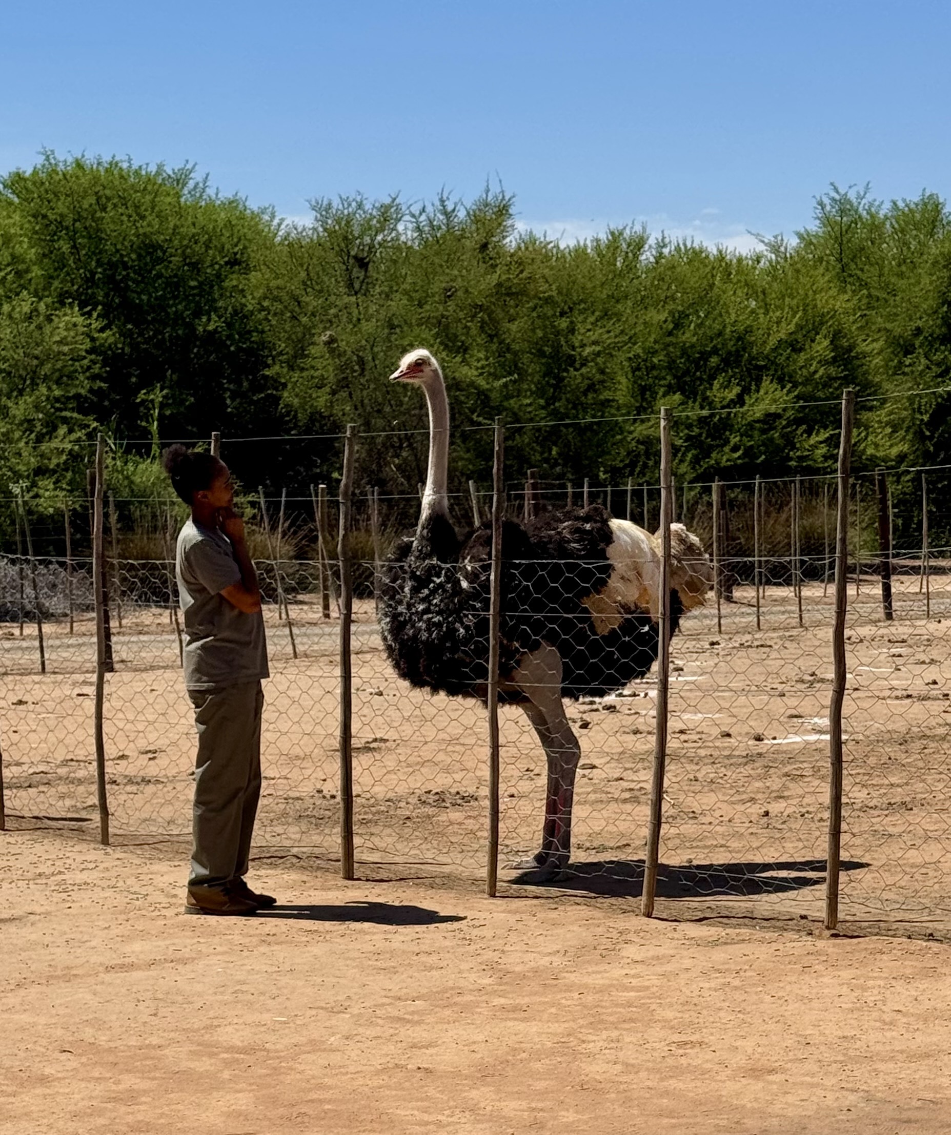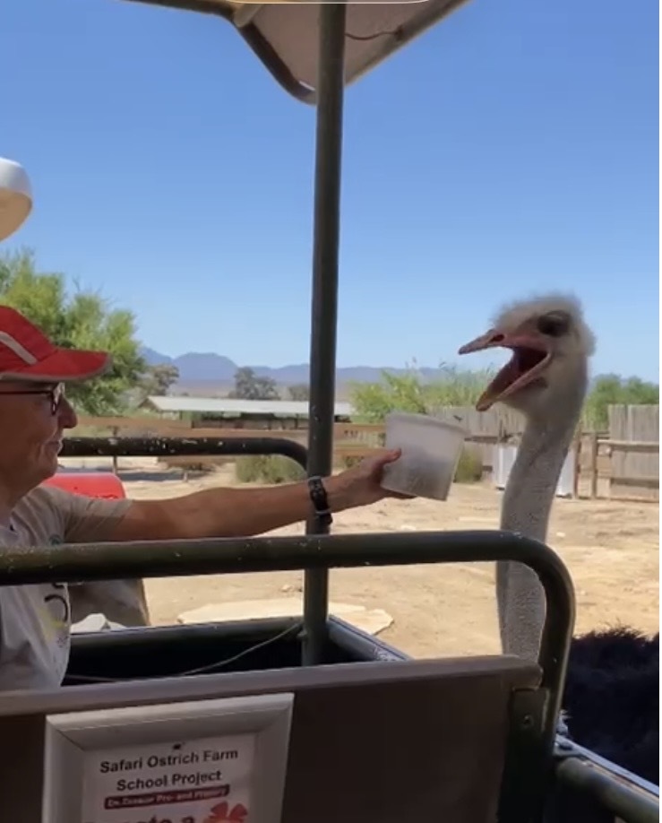 Today is a rest day but we did go to an ostrich farm to learn about these funny creatures. This farm has about 1000 birds for show only. They come from 3 places South Africa, Kenya and Zimbabwe. They are very curious and know as soon as they see the tractor that they will get fed. Many of us purchased a bucket of feed but their table manors are terrible. In the afternoon I visited the local bike shop and enjoyed a 2 hour nap in my air conditioned room while it was 35C outside.