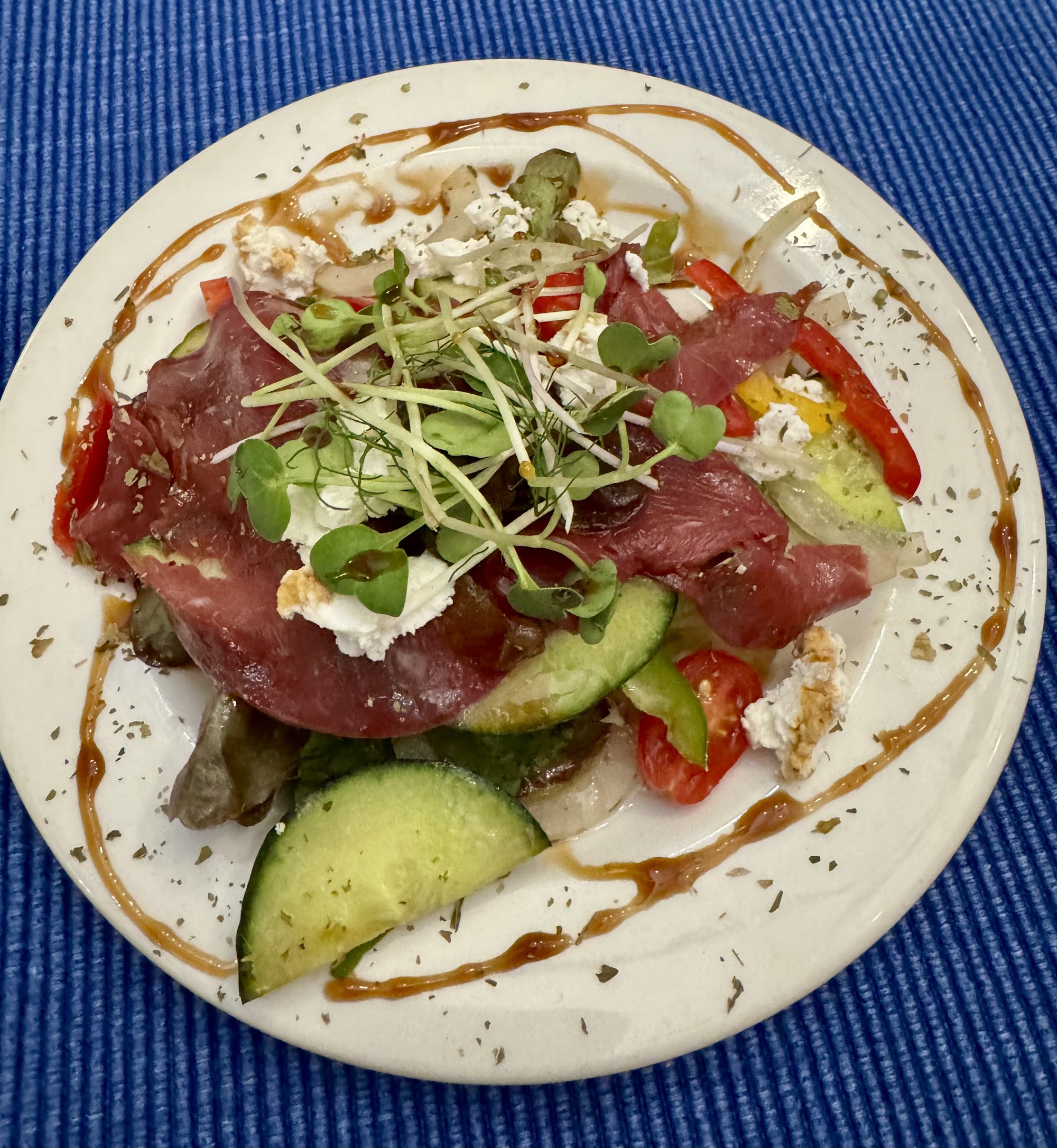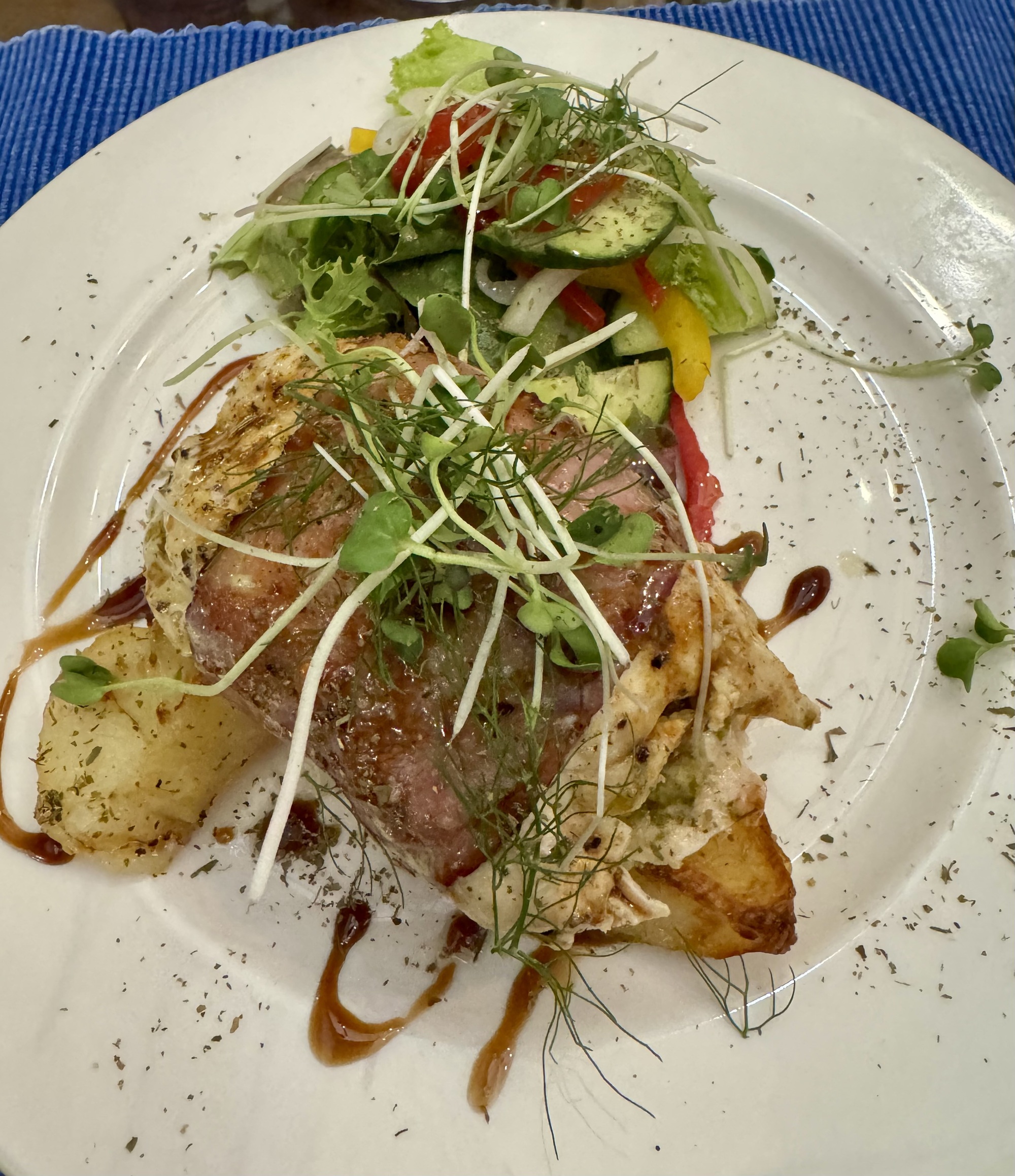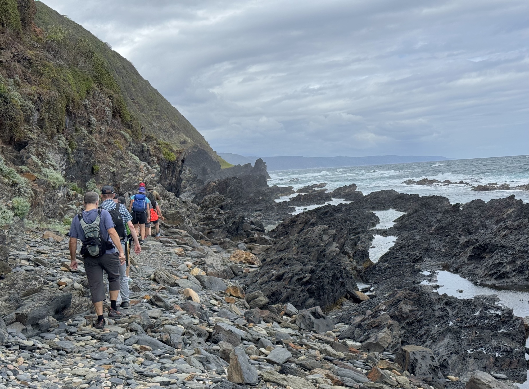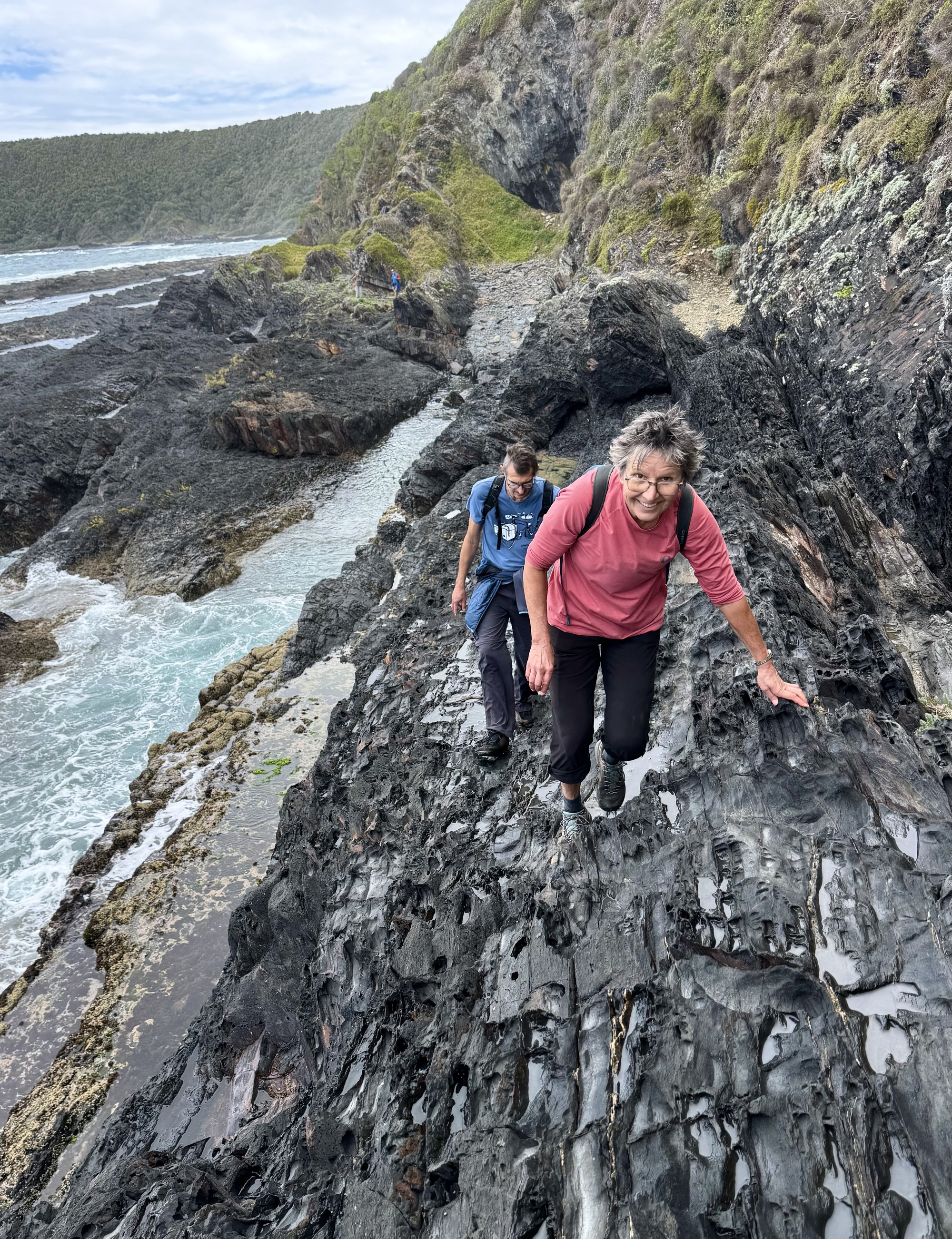 Today we completed a 10km challenging hike rather than cycle. We climbed up a steep rocky trail to the top of a ridge for a great view of the river mouth as it met the ocean. The way down was much gentler until we reach the coast where we had to scramble over some serious rocks. It was a great hike and much longer and challenging than my last time here. I earned my pizza and beer at lunch.